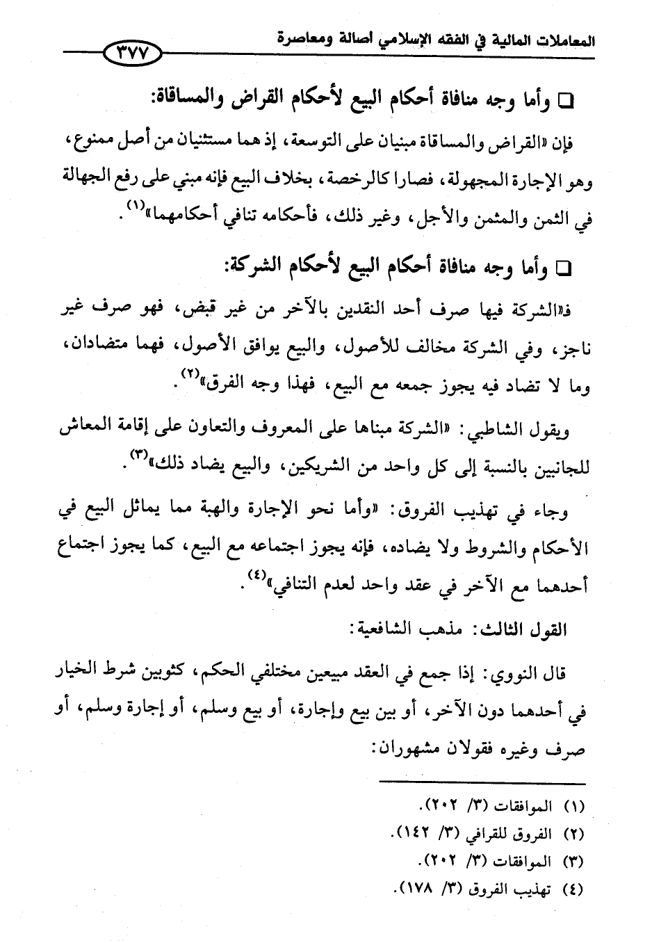 ويقول الشاطبي: "الشركة مبناها على المعروف والتعاون على إقامة المعاش للجانبين بالنسبة إلى كل واحد من الشريكين، والبيع يضاد ذلك" (¬٣).