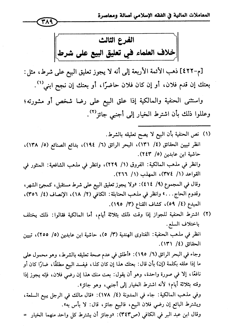 الفرع الثالث خلاف العلماء في تعليق البيع على شرط
