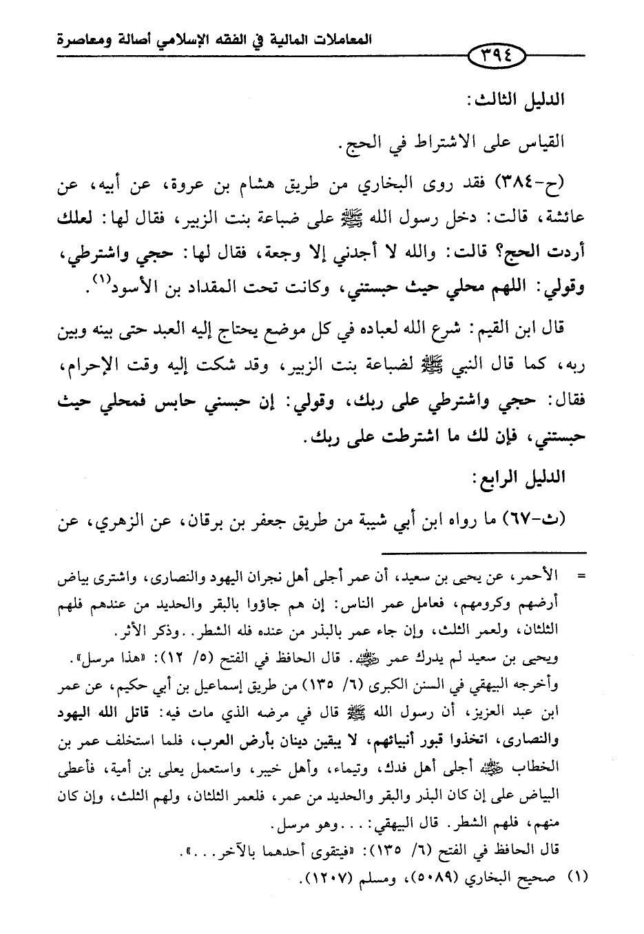 (ح-٣٨٤) فقد روى البخاري من طريق هشام بن عروة، عن أبيه، عن عائشة، قالت: دخل رسول الله - صلى الله عليه وسلم - على ضباعة بنت الزبير، فقال لها: لعلك أردت الحج؟ قالت: والله لا أجدني إلا وجعة، فقال لها: حجي واشترطي، وقولي: اللهم محلي حيث حبستني، وكانت تحت المقداد بن الأسود (¬١).