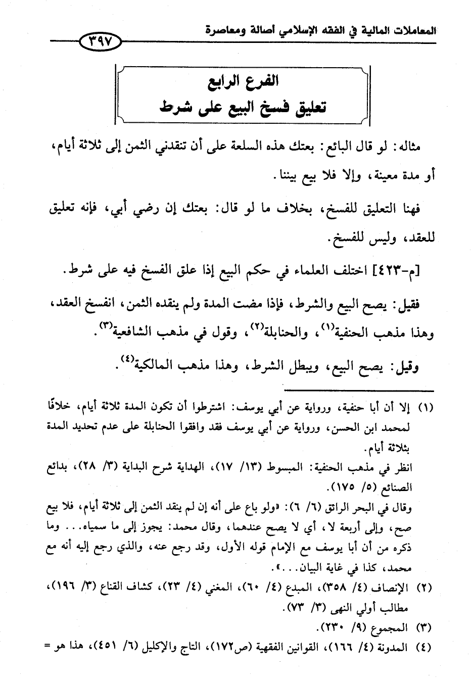 الفرع الرابع تعليق فسخ المبيع على شرط