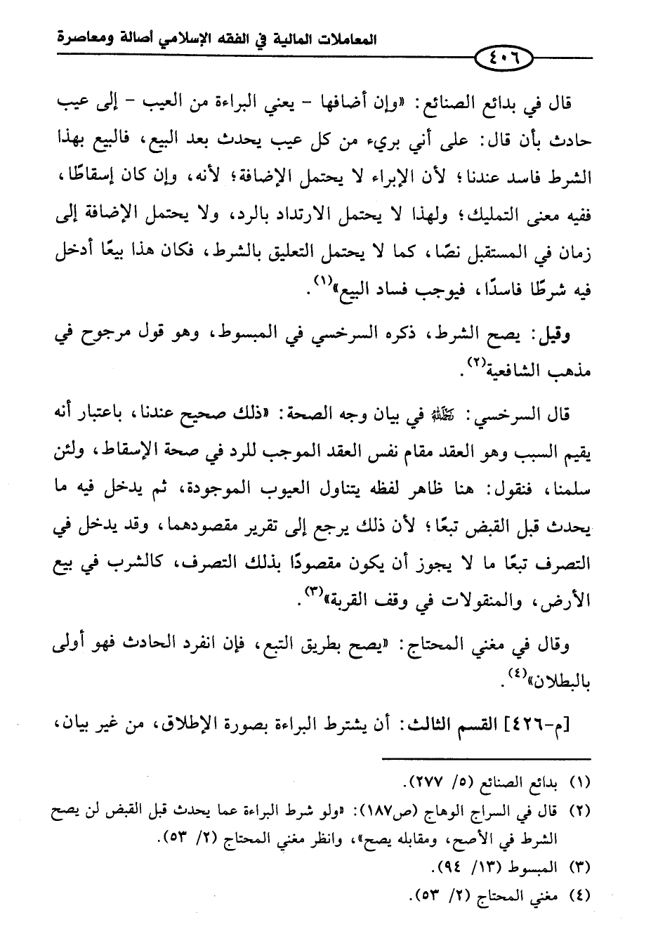 (¬٢) قال في السراج الوهاج (ص ١٨٧): ولو شرط البراءة عما يحدث قبل القبض لن يصح الشرط في الأصح، ومقابله يصح"، وانظر مغني المحتاج (٢/ ٥٣).