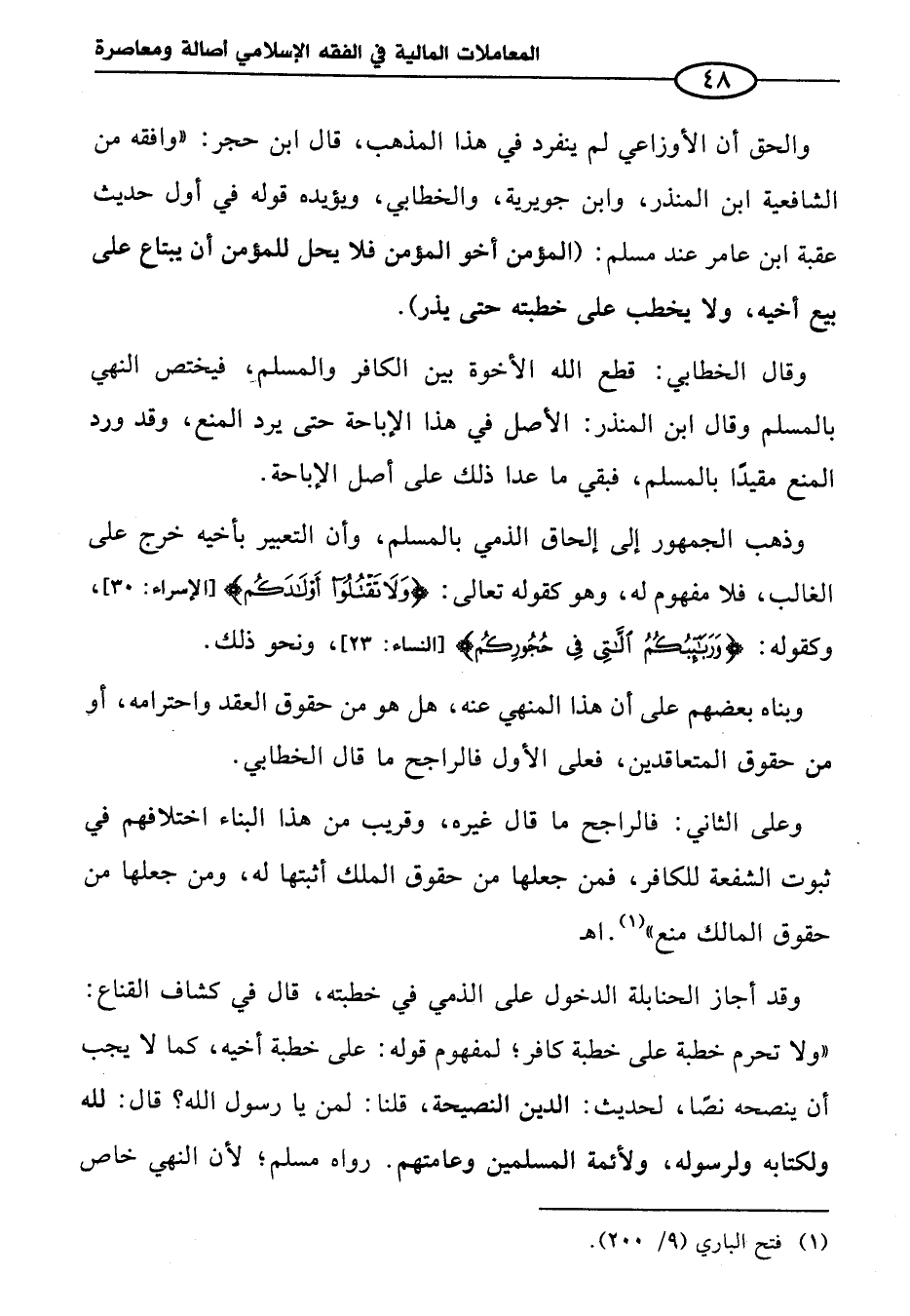 وذهب الجمهور إلى إلحاق الذمي بالمسلم، وأن التعبير بأخيه خرج على الغالب، فلا مفهوم له، وهو كقوله تعالي: {وَلَا تَقْتُلُوا أَنْفُسَكُمْ إِنَّ اللَّهَ كَانَ بِكُمْ رَحِيمًا} [النساء: ٢٩]، وكقوله: {وَرَبَائِبُكُمُ اللَّاتِي فِي حُجُورِكُمْ} [النساء: ٢٣]، ونحو ذلك.