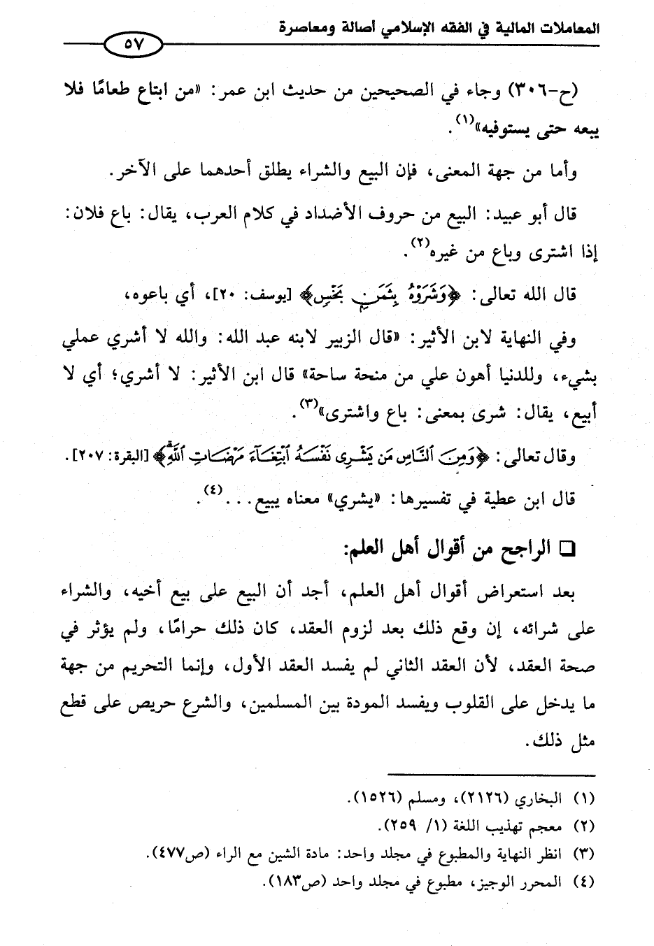 (ح-٣٠٦) وجاء في الصحيحين من حديث ابن عمر: "من ابتاع طعامًا فلا يبعه حتى يستوفيه" (¬١).
