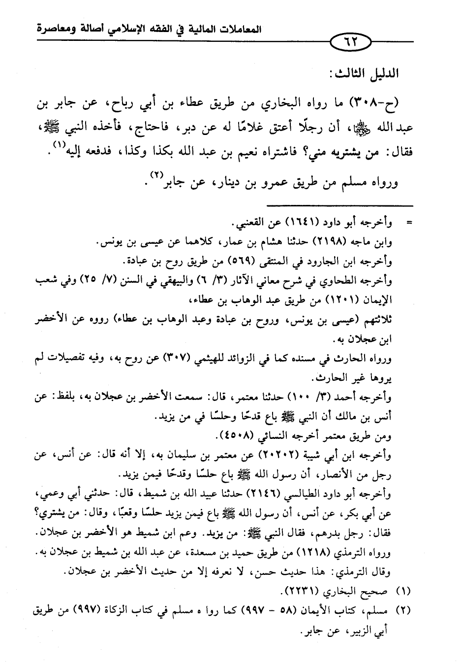 (¬٢) مسلم، كتاب الأيمان (٥٨ - ٩٩٧) كما رواه مسلم في كتاب الزكاة (٩٩٧) من طريق أبي الزبير، عن جابر.