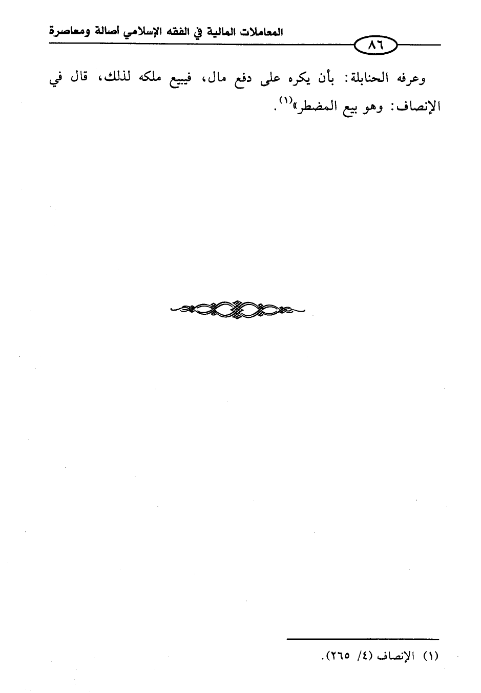 وعرفه الحنابلة: بأن يكره على دفع مال، فيبيع ملكه لذلك، قال في الإنصاف: وهو بيع المضطر" (¬١).