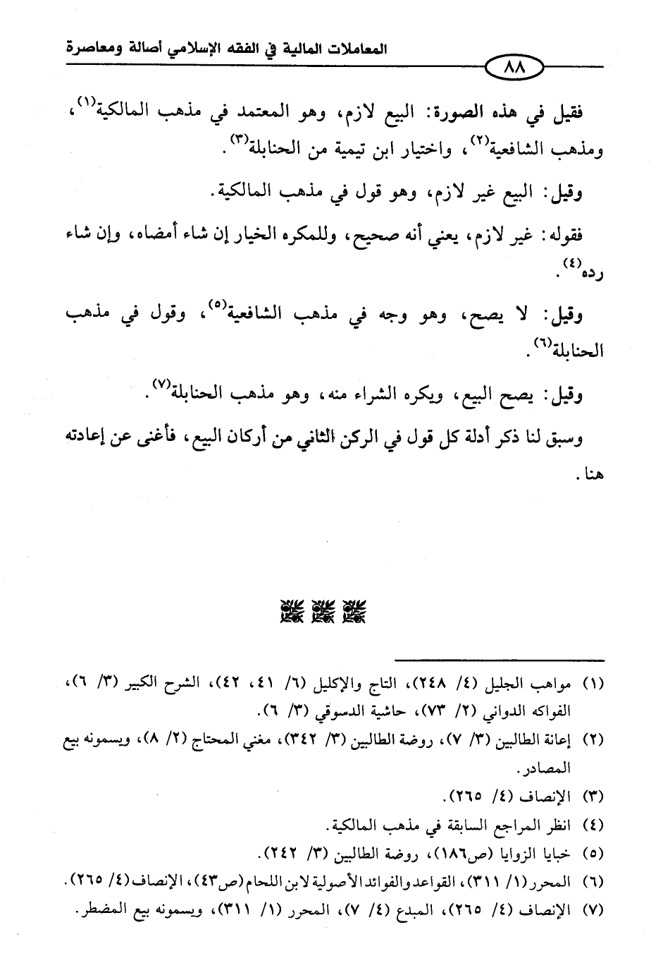 (¬٢) إعانة الطالبين (٣/ ٧)، روضة الطالبين (٣/ ٣٤٢)، مغني المحتاج (٢/ ٨)، ويسمونه بيع المصادر.
