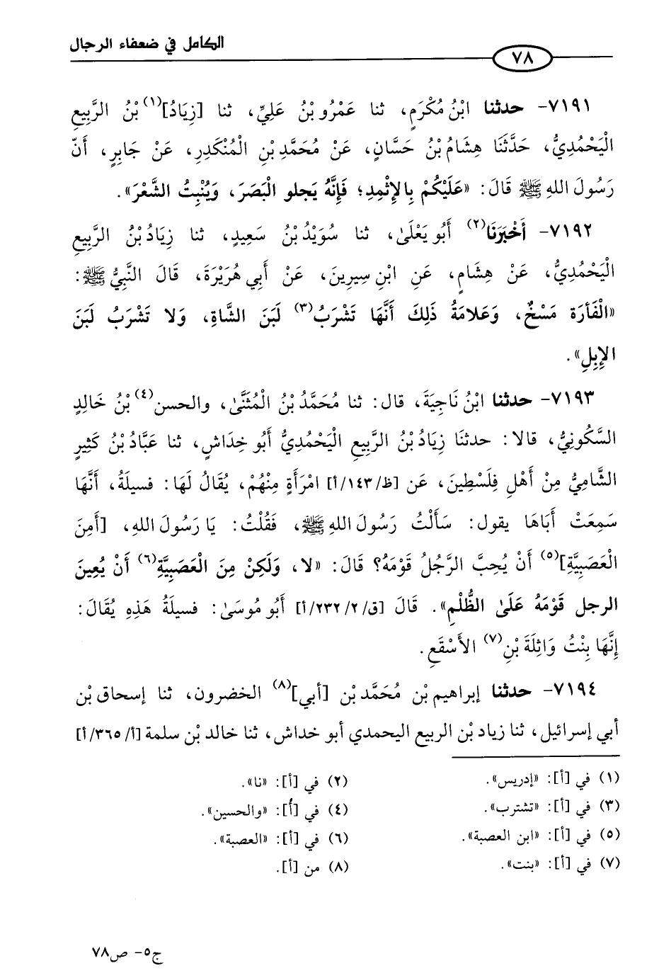 كتاب الكامل في ضعفاء الرجال لابن عدي - الرشد (اسم الجزء: 5)