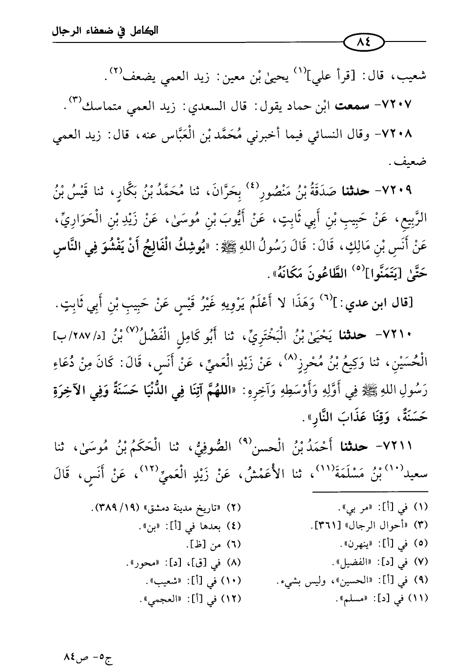 7207 - سمعتُ ابن حماد يقول: قال السعدي: زيد العمي متماسك.