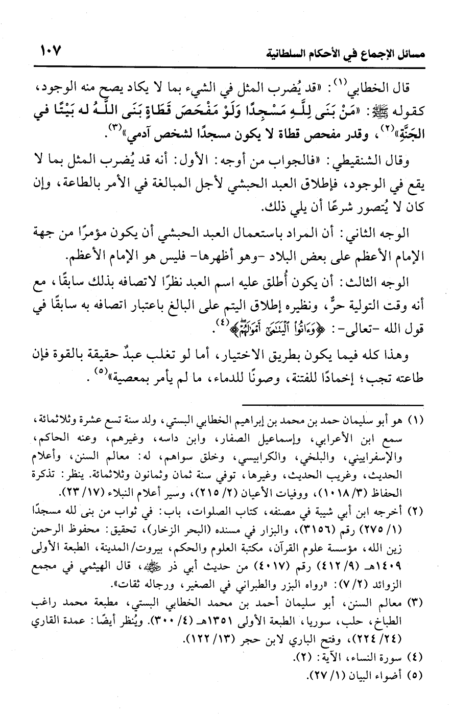 (¬3) معالم السنن، أبو سليمان أحمد بن محمد الخطابي البستي، مطبعة محمد راغب الطباخ، حلب، سوريا، الطبعة الأولى 1351 هـ (4/ 300). ويُنظر أيضًا: عمدة القاري (24/ 224)، وفتح الباري لابن حجر (13/ 122).