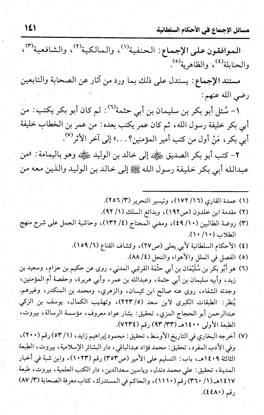 (¬4) الأحكام السلطانية لأبي يعلى (ص 27)، وكشاف القناع (6/ 159).