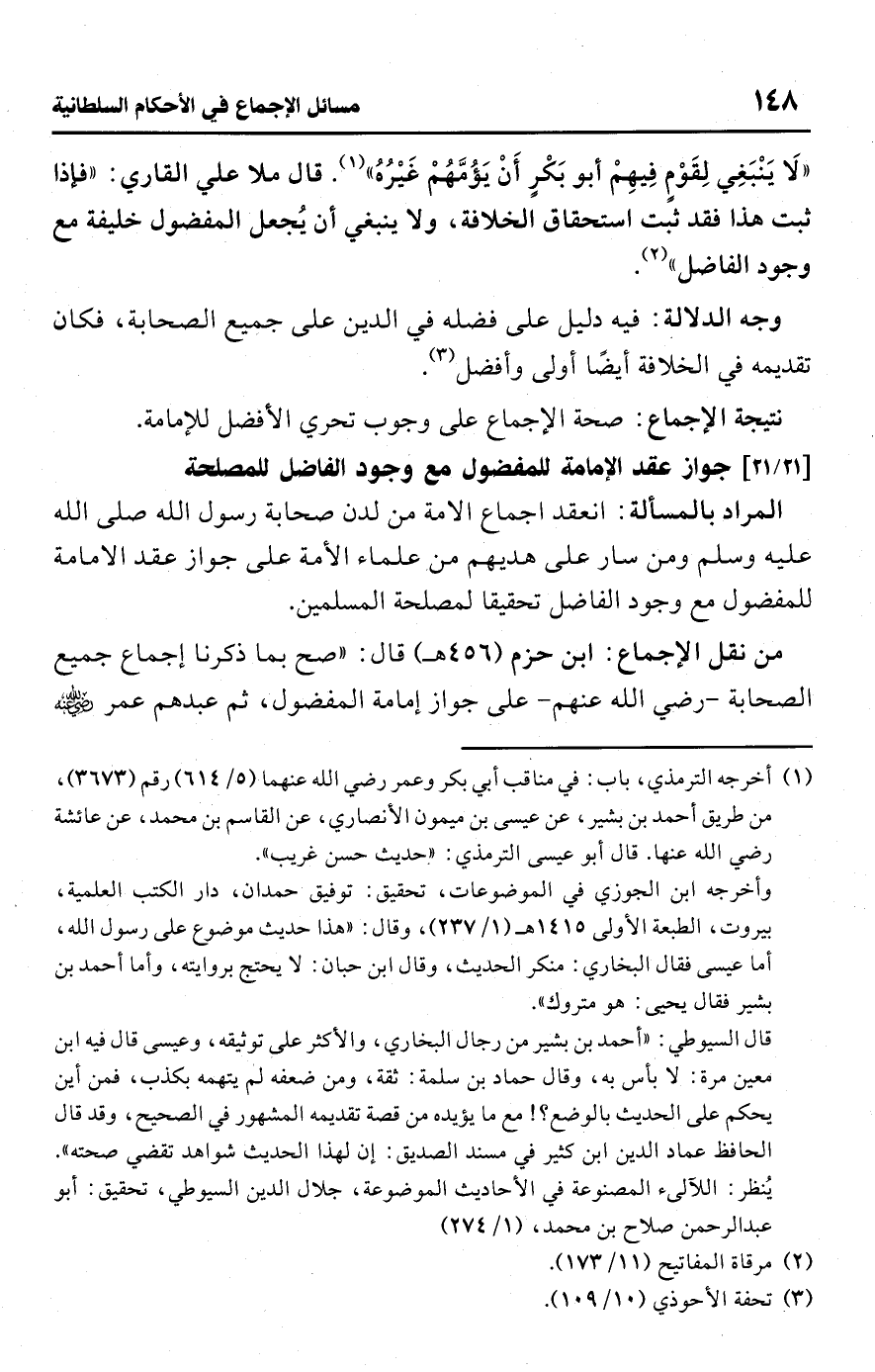 [21/ 21] جواز عقد الإمامة للمفضول مع وجود الفاضل للمصلحة