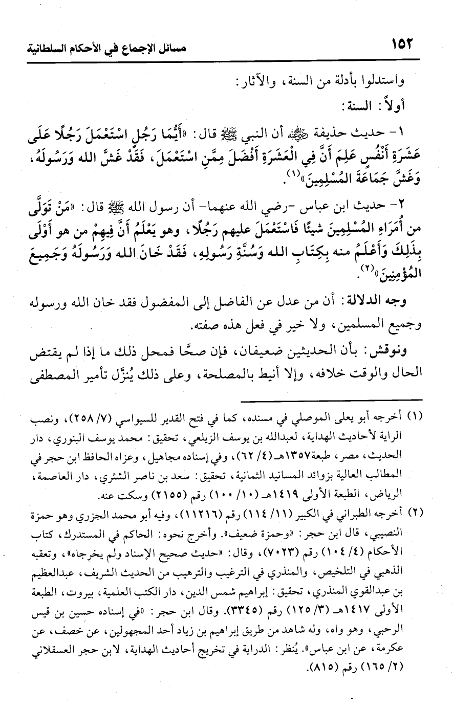2 - حديث ابن عباس -رضي اللَّه عنهما- أن رسول اللَّه -صلى اللَّه عليه وسلم- قال: "مَنْ تَوَلَّى منِ أُمَرَاءِ المُسْلِمِينَ شيئًا فَاسْتَعْمَلَ عليهم رَجُلًا، وهو يَعْلَمُ أَنَّ فِيهِمْ من هو أَوْلَى بِذلِكَ وَأَعْلَمُ منه بِكِتَابِ اللَّه وَسُنَّةِ رَسُولِهِ، فَقَدْ خَانَ اللَّه وَرَسُولَهُ وَجَمِيعَ المُؤْمِنِينَ" (¬2).
