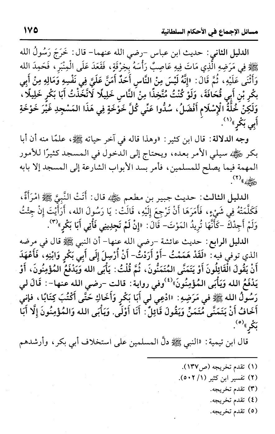 قال ابن تيمية: "النبي -صلى اللَّه عليه وسلم- دلَّ المسلمين على استخلاف أبي بكر، وأرشدهم