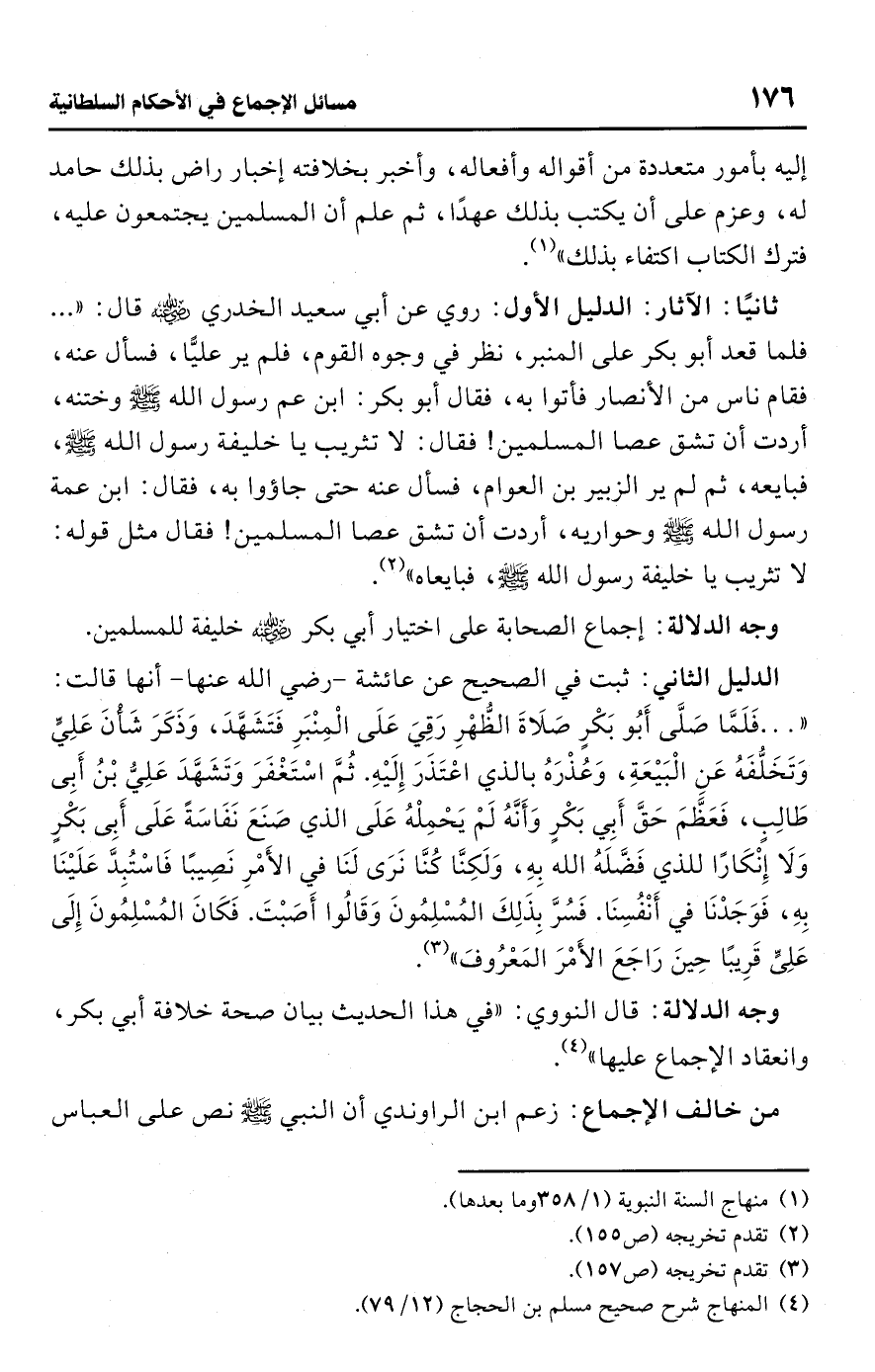 • وجه الدلالة: إجماع الصحابة على اختيار أبي بكر -رضي اللَّه عنه- خليفة للمسلمين.