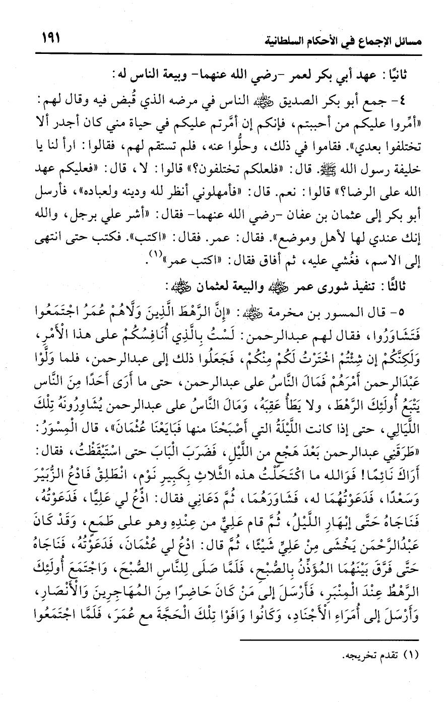 • ثالثًا: تنفيذ شورى عمر رضى اللَّه عنه والبيعة لعثمان -رضي اللَّه عنه-: