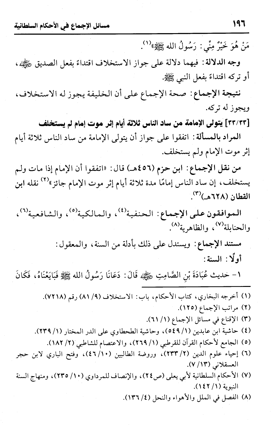 (¬7) الأحكام السلطانية لأبي يعلى (ص 24)، والإنصاف للمرداوي (10/ 235)، ومنهاج السنة النبوية (1/ 142).