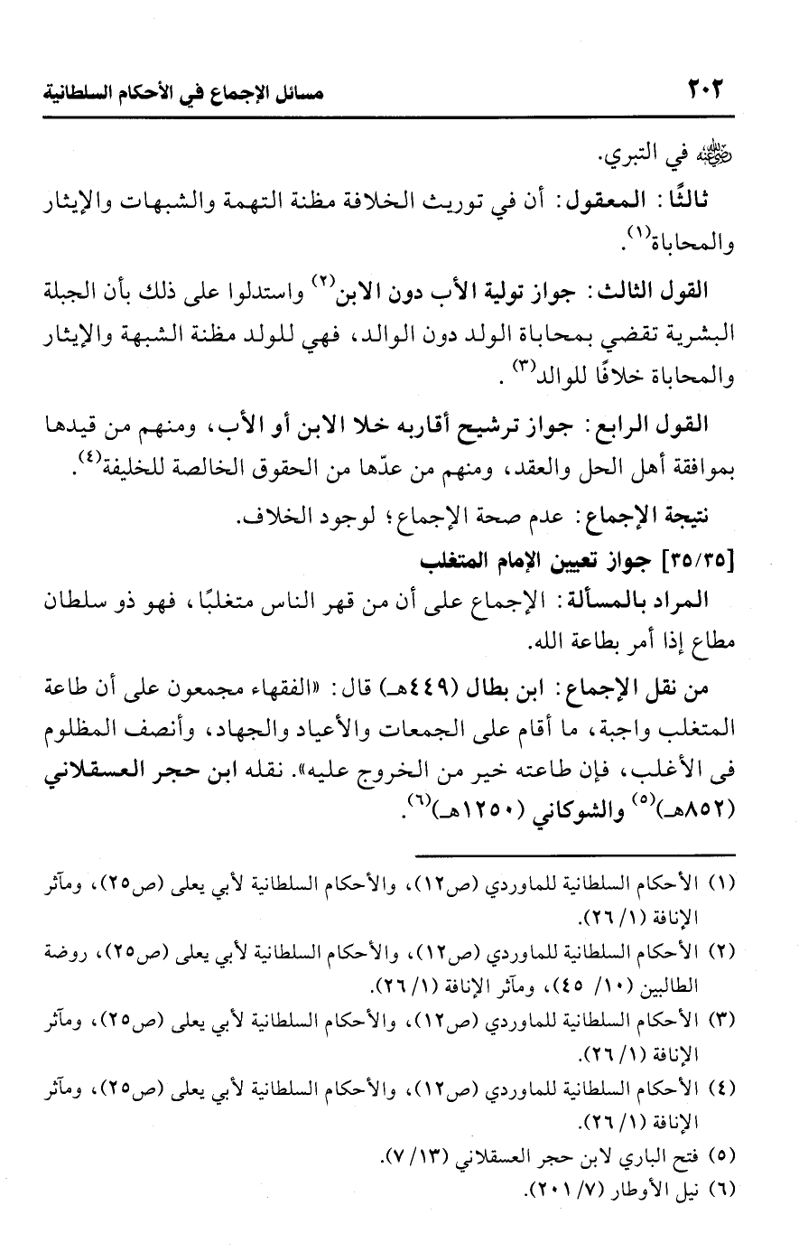 (¬2) الأحكام السلطانية للماوردي (ص 12)، والأحكام السلطانية لأبي يعلى (ص 25)، روضة الطالبين (10/ 45)، ومآثر الإنافة (1/ 26).