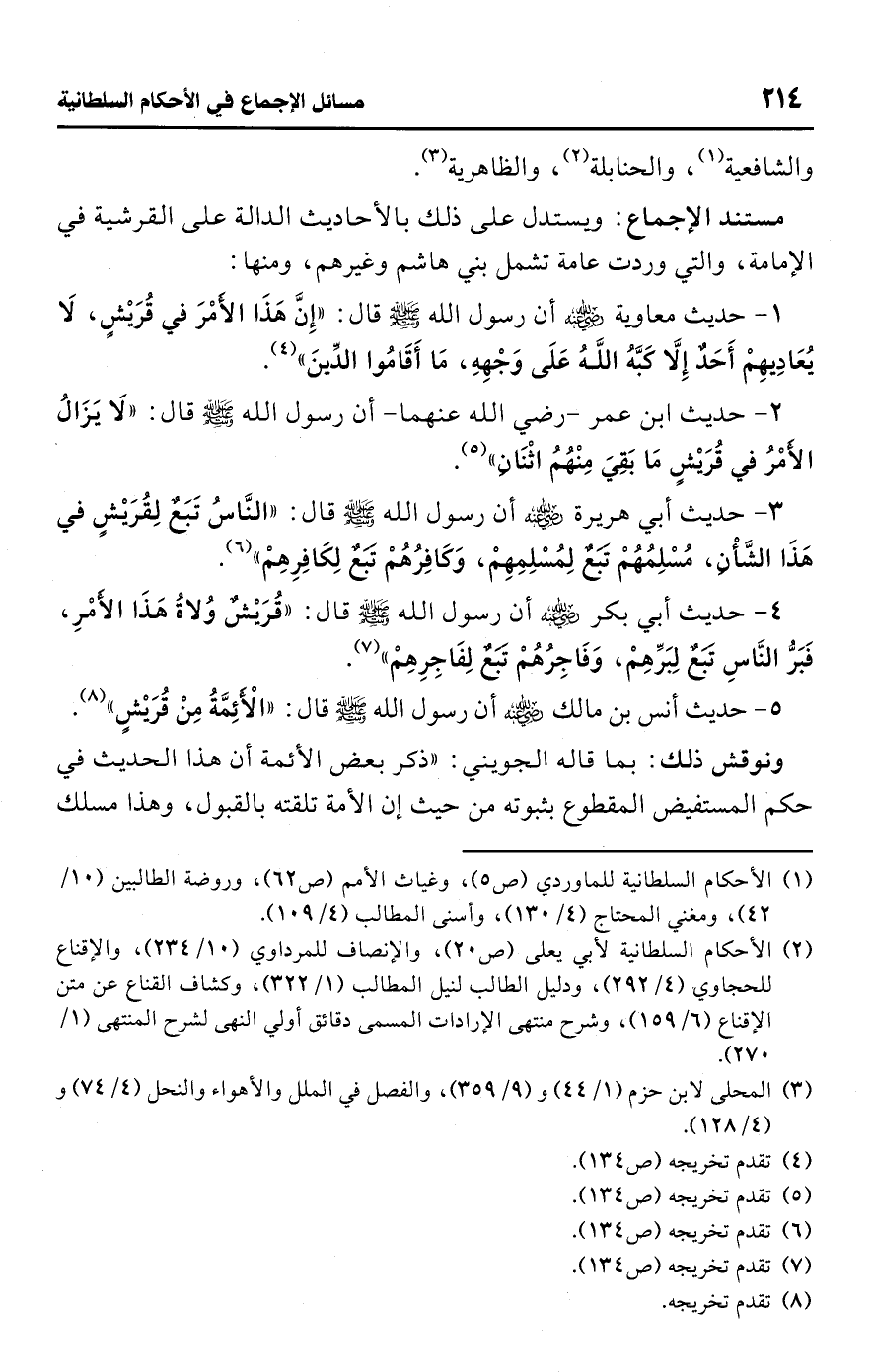 (¬1) الأحكام السلطانية للماوردي (ص 5)، وغياث الأمم (ص 62)، وروضة الطالبين (10/ 42)، ومغني المحتاج (4/ 130)، وأسنى المطالب (4/ 109).