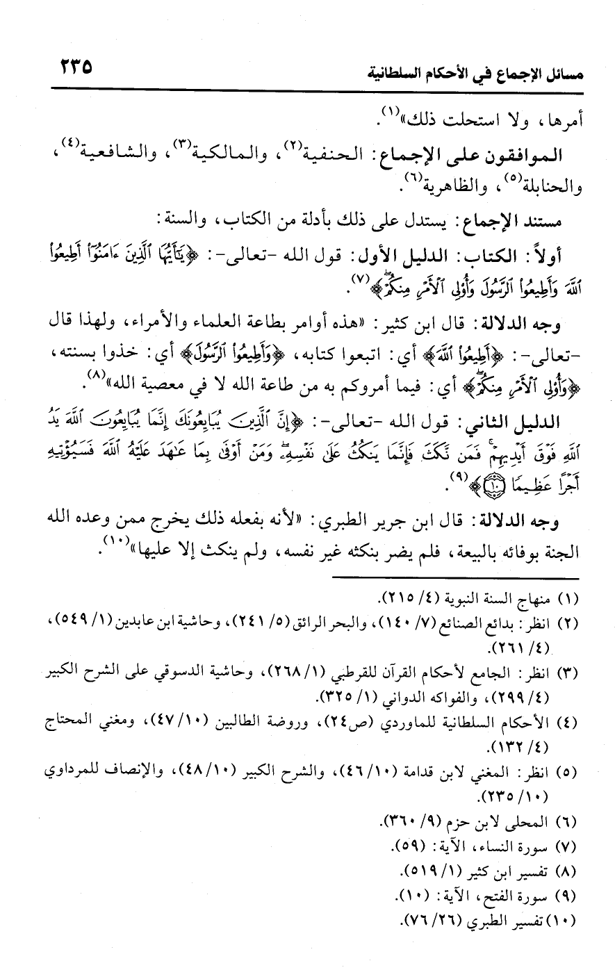 (¬4) الأحكام السلطانية للماوردي (ص 24)، وروضة الطالبين (10/ 47)، ومغني المحتاج (4/ 132).