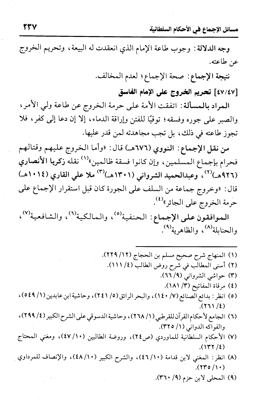 (¬7) الأحكام السلطانية للماوردي (ص 24)، وروضة الطالبين (10/ 47)، ومغني المحتاج (4/ 132).