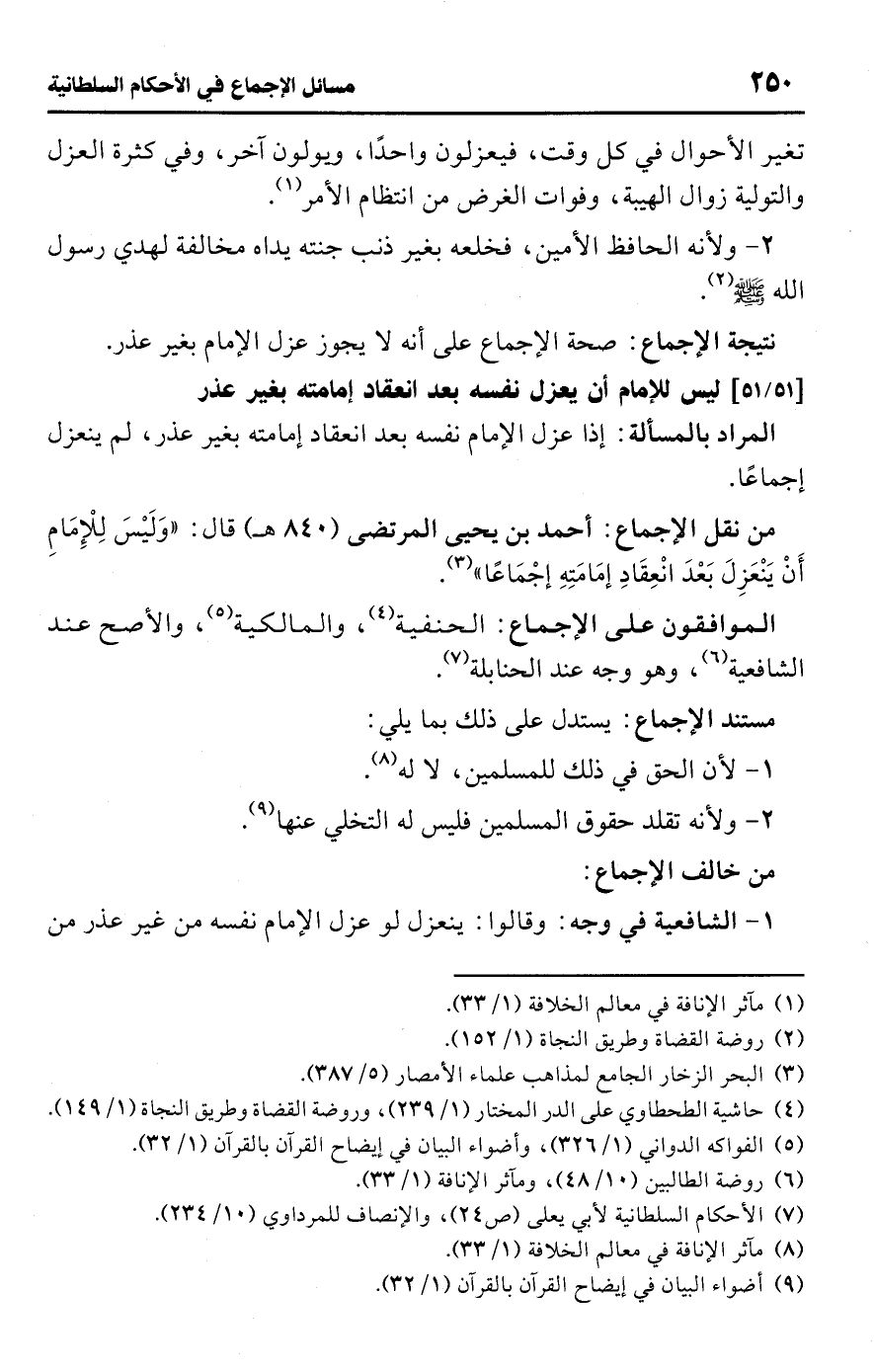 [51/ 51] ليس للإمام أن يعزل نفسه بعد انعقاد إمامته بغير عذر