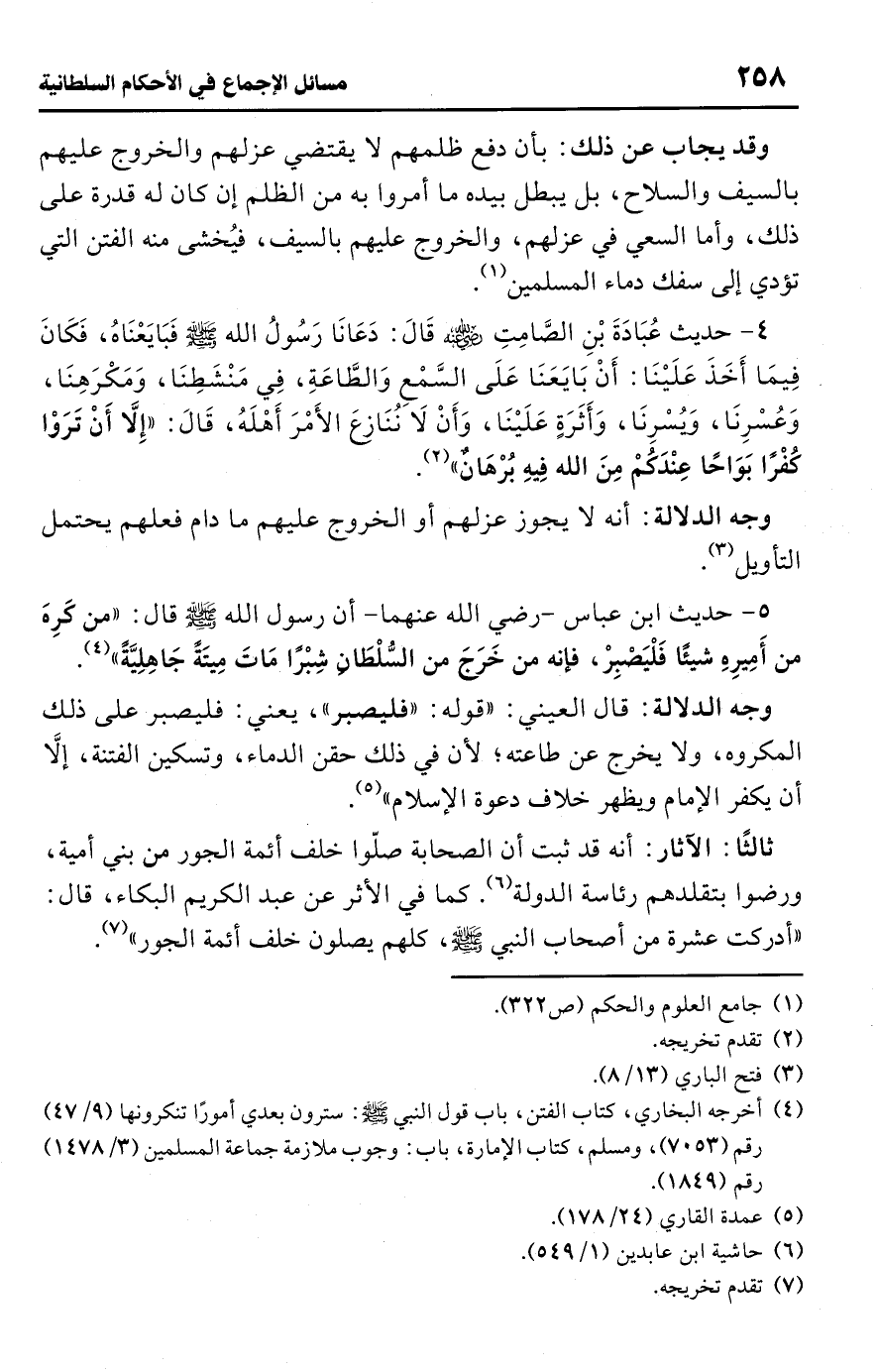 • وجه الدلالة: فيه الأمر بألا ننزع يدًا من طاعة، ولا أن ننابذهم، ما لم يأمروا بمعصية.