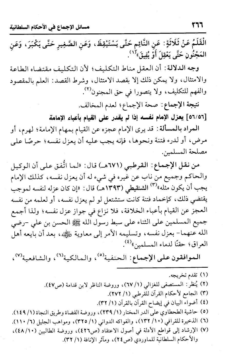(¬7) الإرشاد إلى قواطع الأدلة في أصول الاعتقاد (ص 426)، وروضة الطالبين (10/ 48)، والأحكام السلطانية للماوردي (ص 24)، ومآثر الإنافة (1/ 32).