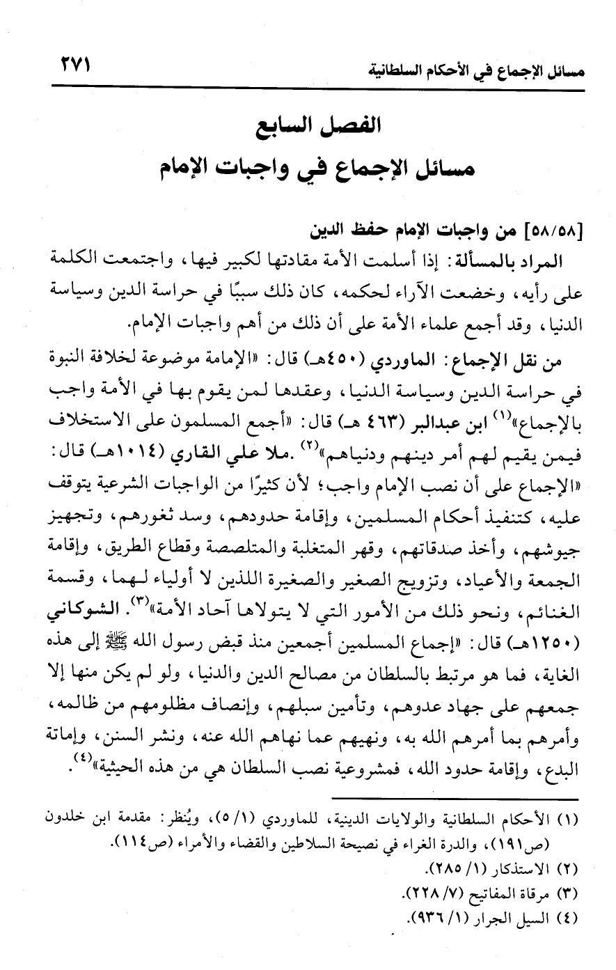 الفصل السابع مسائل الإجماع في واجبات الإمام