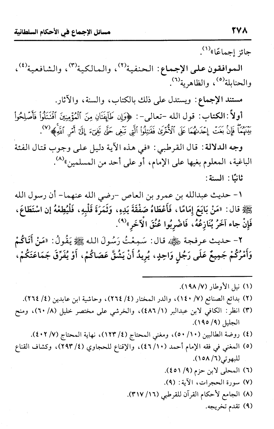 • الموافقون على الإجماع: الحنفية (¬2)، والمالكية (¬3)، والشافعية (¬4)، والحنابلة (¬5)، والظاهرية (¬6).
