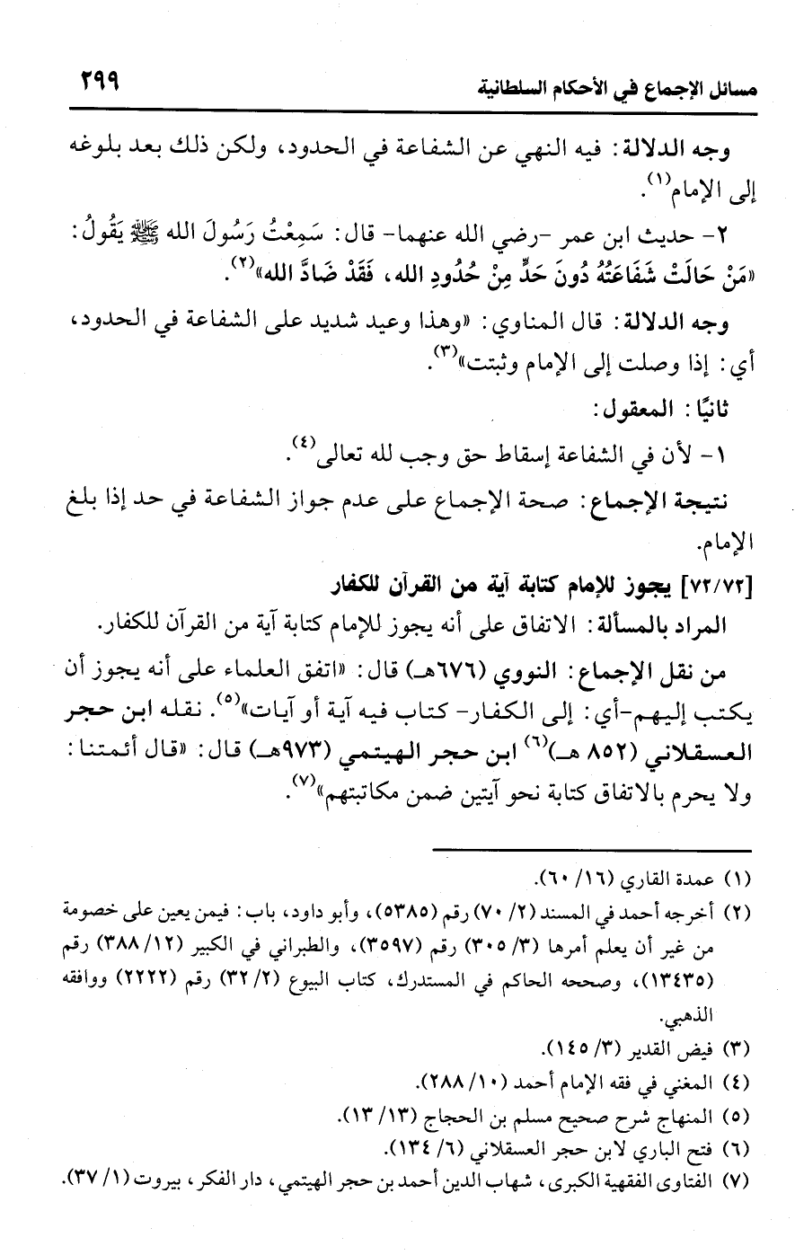 (¬7) الفتاوى الفقهية الكبرى، شهاب الدين أحمد بن حجر الهيتمي، دار الفكر، بيروت (1/ 37).