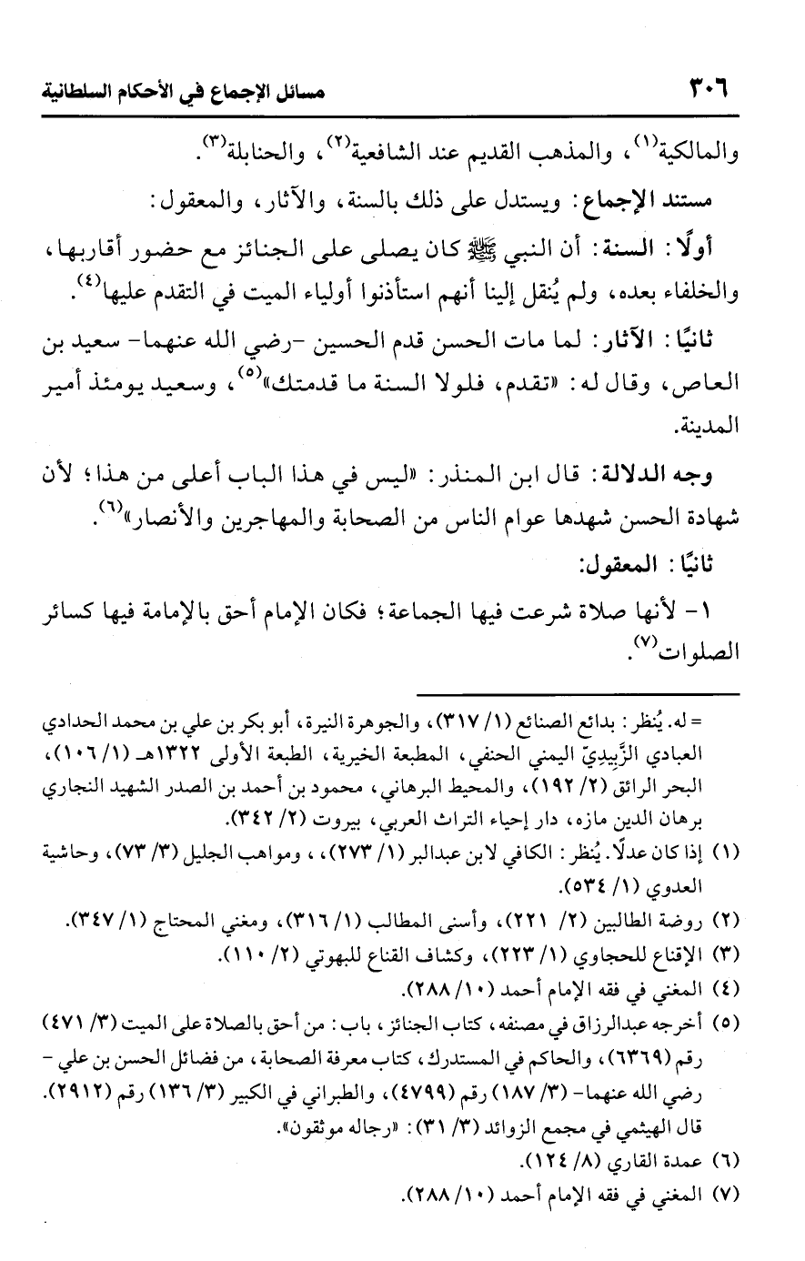 • مستند الإجماع: ويستدل على ذلك بالسنة، والآثار، والمعقول: