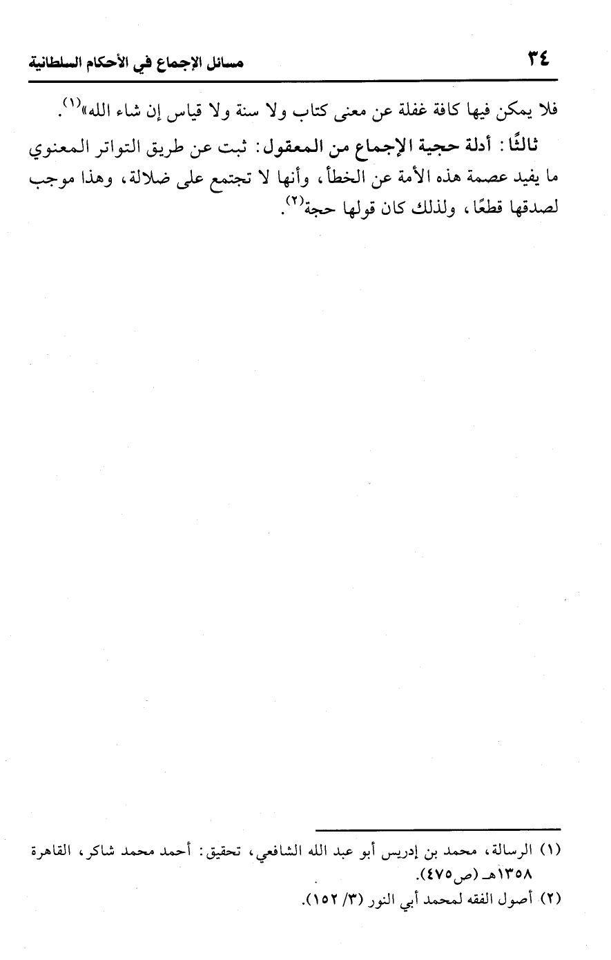 (¬1) الرسالة، محمد بن إدريس أبو عبد اللَّه الشافعي، تحقيق: أحمد محمد شاكر، القاهرة 1358 هـ (ص 475).