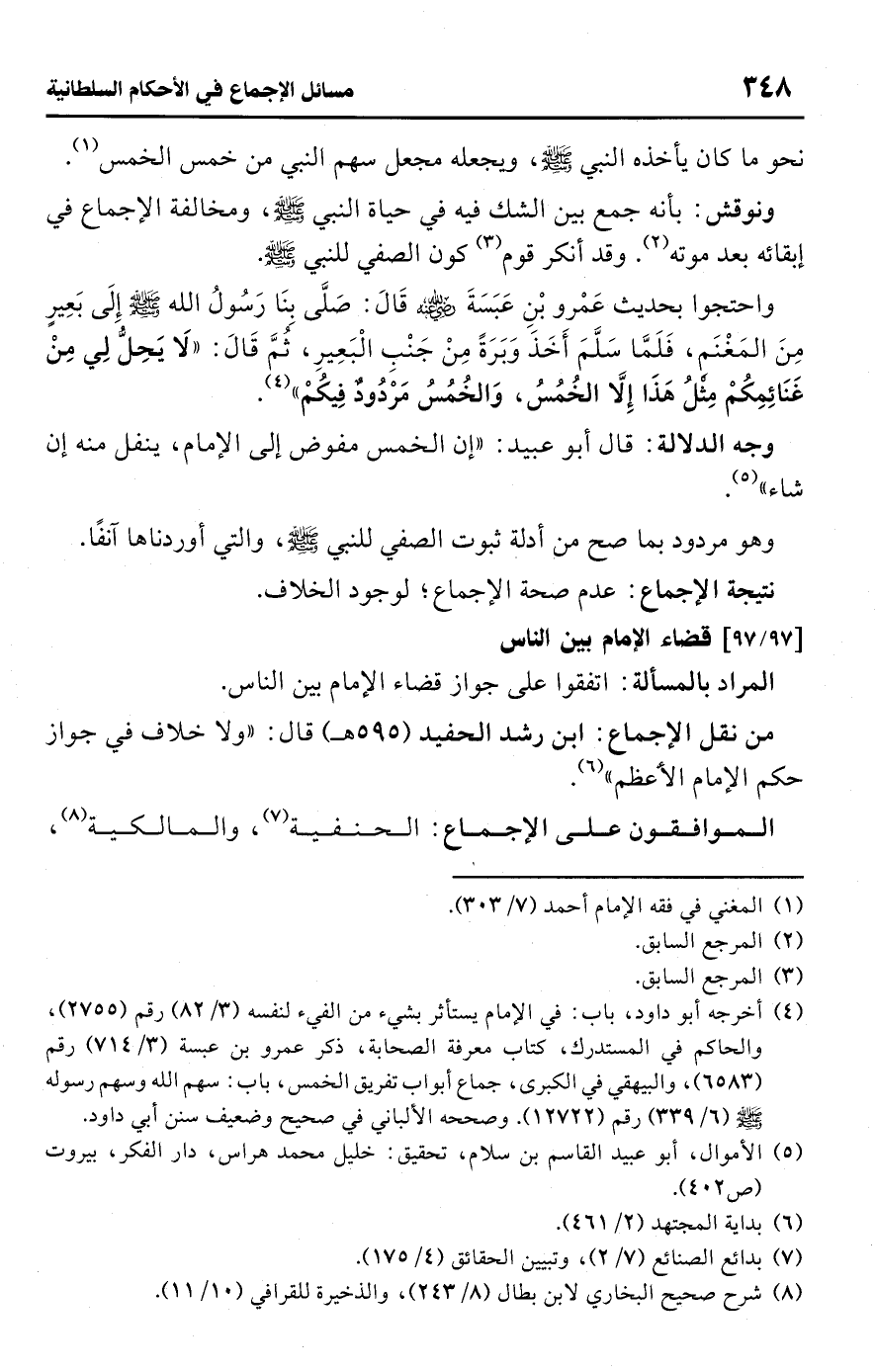 (¬8) شرح صحيح البخاري لابن بطال (8/ 243)، والذخيرة للقرافي (10/ 11).