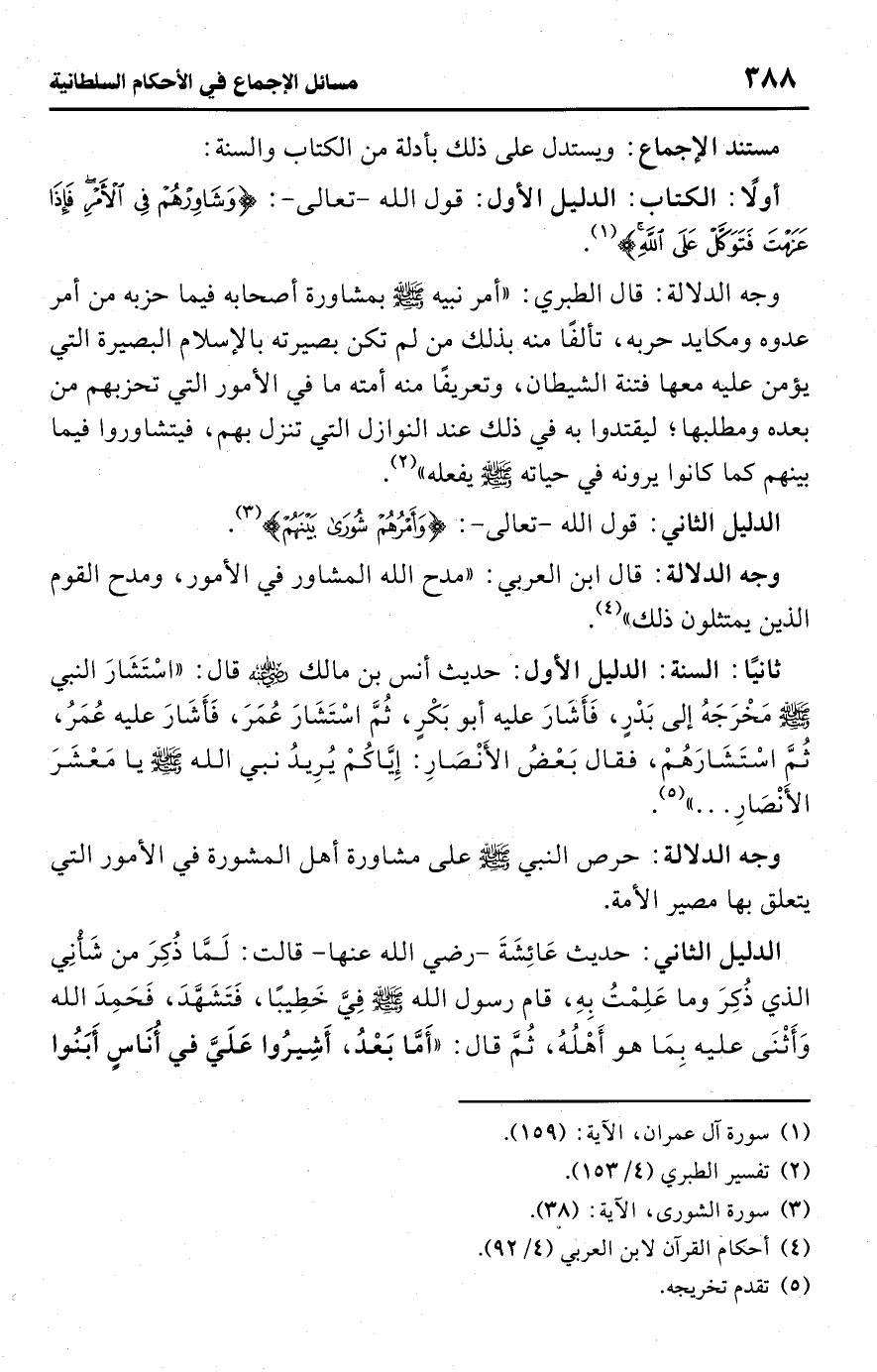 • أولًا: الكتاب: الدليل الأول: قول اللَّه -تعالى-: {وَشَاوِرْهُمْ فِي الْأَمْرِ فَإِذَا عَزَمْتَ فَتَوَكَّلْ عَلَى اللَّهِ} (¬1).