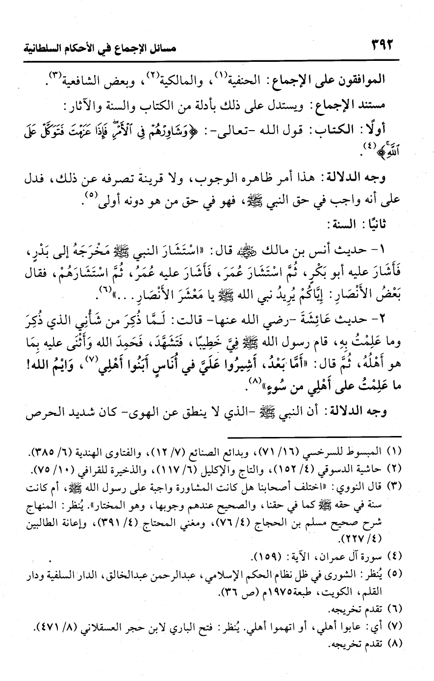 (¬5) يُنظر: الشورى في ظل نظام الحكم الإسلامي، عبد الرحمن عبد الخالق، الدار السلفية ودار القلم، الكويت، طبعة 1975 م (ص 36).