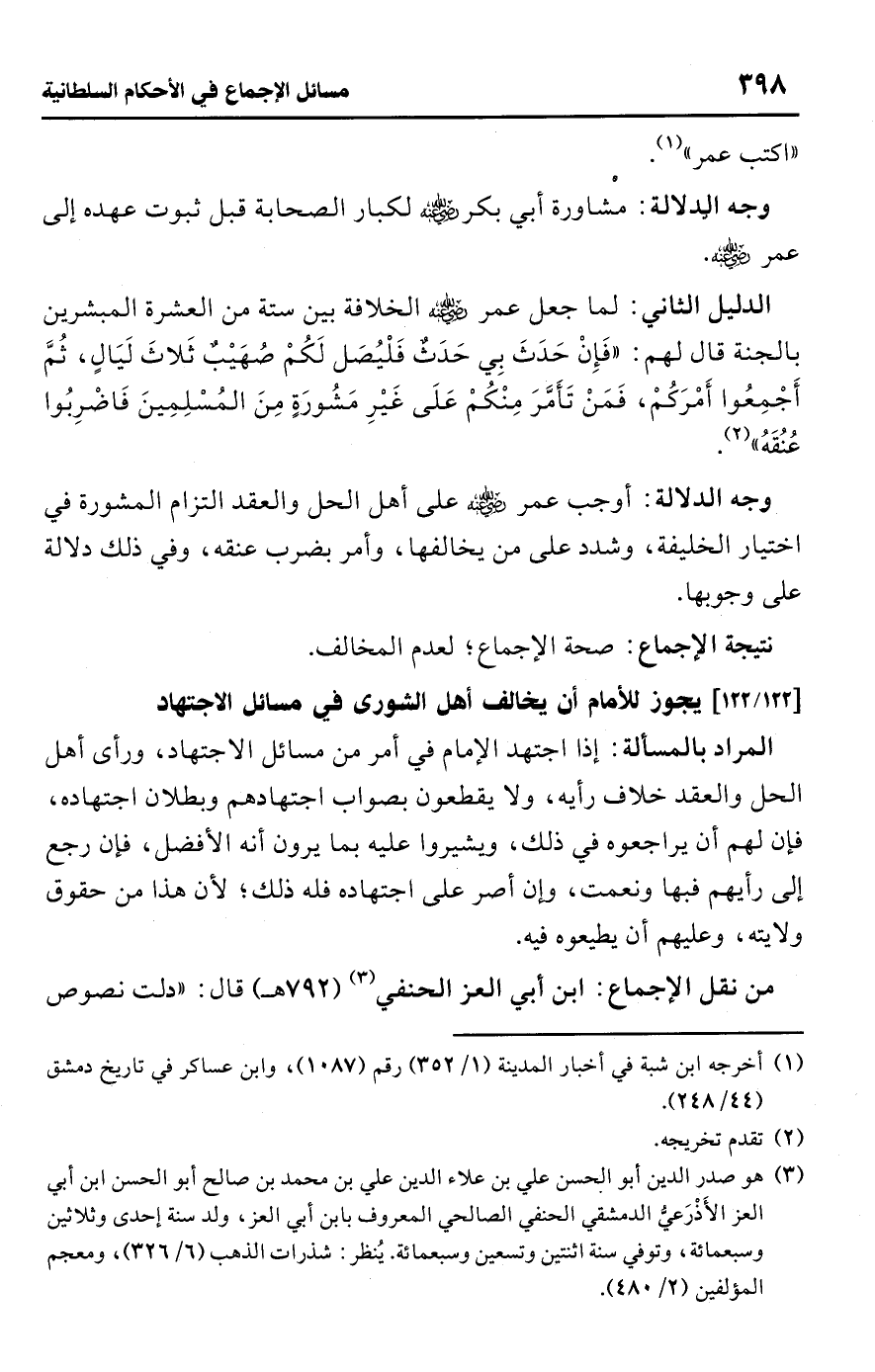 [122/ 122] يجوز للإمام أن يخالف أهل الشورى في مسائل الاجتهاد