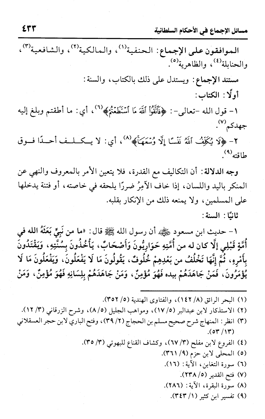• الموافقون على الإجماع: الحنفية (¬1)، والمالكية (¬2)، والشافعية (¬3)، والحنابلة (¬4)، والظاهرية (¬5).