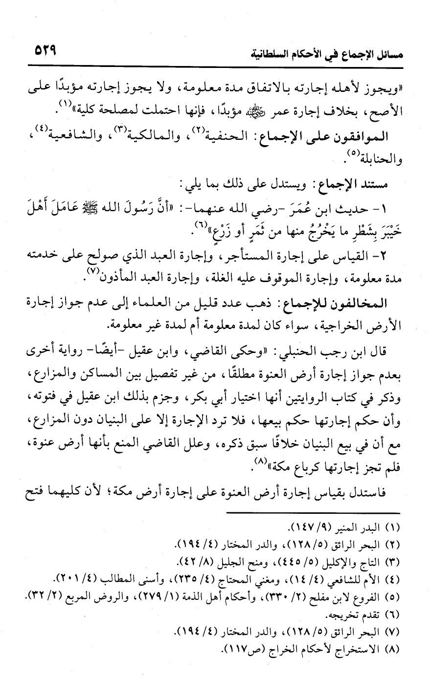 • المخالفون للإجماع: ذهب عدد قليل من العلماء إلى عدم جواز إجارة الأرض الخراجية، سواء كان لمدة معلومة أم لمدة غير معلومة.