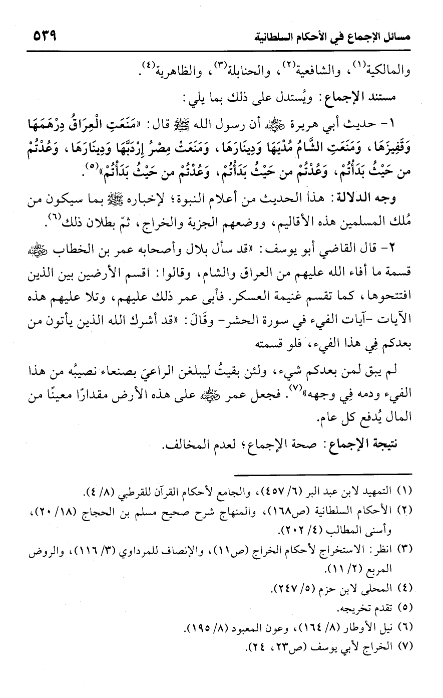 (¬3) انظر: الاستخراج لأحكام الخراج (ص 11)، والإنصاف للمرداوي (3/ 116)، والروض المربع (2/ 11).