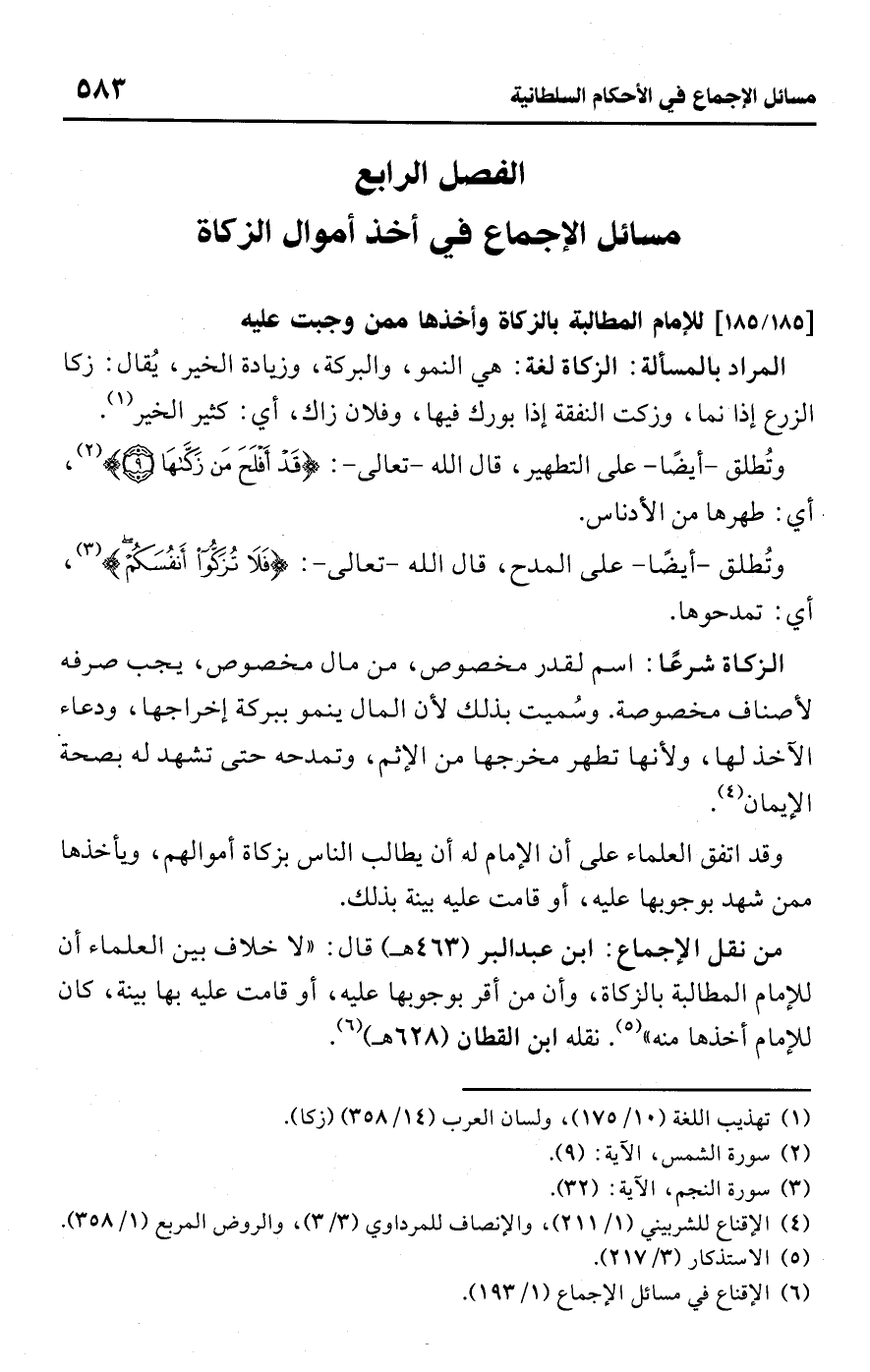 الفصل الرابع مسائل الإجماع في أخذ أموال الزكاة