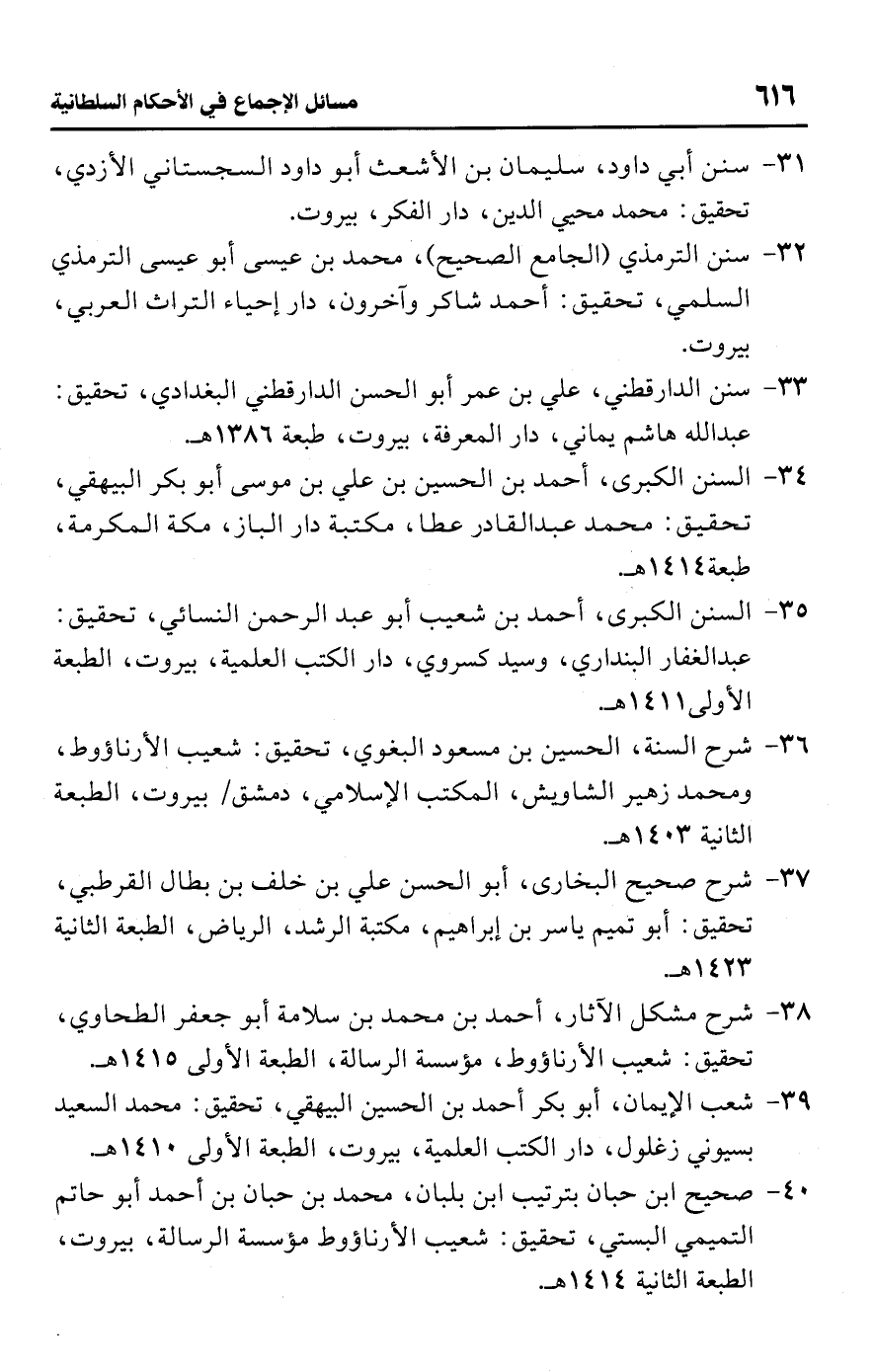 34 - السنن الكبرى، أحمد بن الحسين بن علي بن موسى أبو بكر البيهقي، تحقيق: محمد عبد القادر عطا، مكتبة دار الباز، مكة المكرمة، طبعة 1414 هـ.