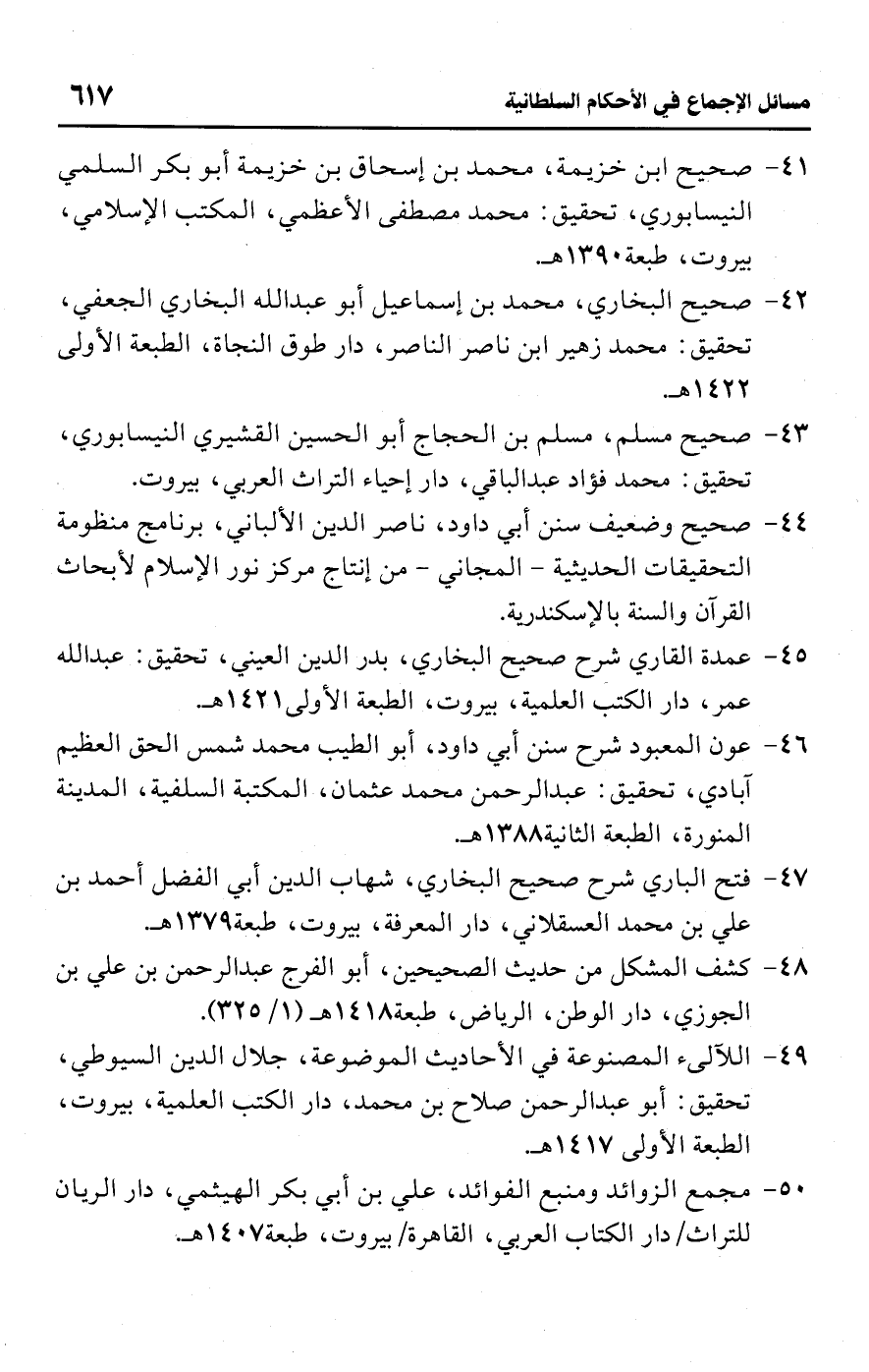 41 - صحيح ابن خزيمة، محمد بن إسحاق بن خزيمة أبو بكر السلمي النيسابوري، تحقيق: محمد مصطفى الأعظمي، المكتب الإسلامي، بيروت، طبعة 1390 هـ.
