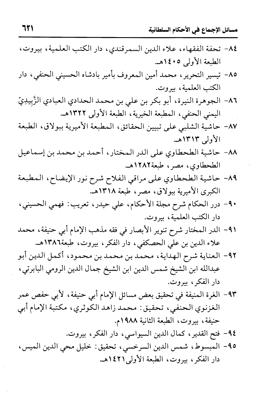 84 - تحفة الفقهاء، علاء الدين السمرقندي، دار الكتب العلمية، بيروت، الطبعة الأولى 1405 هـ.