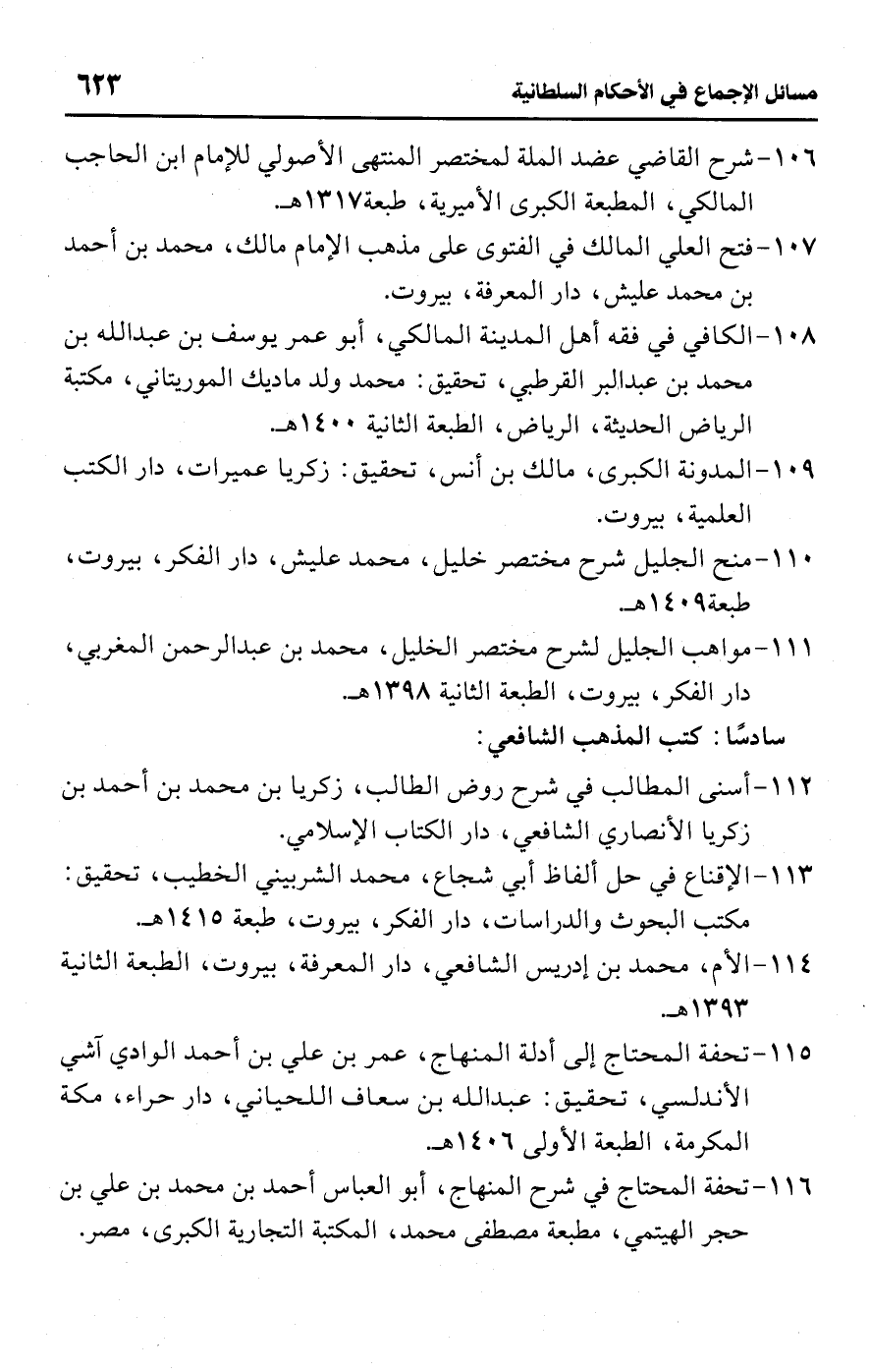 111 - مواهب الجليل لشرح مختصر الخليل، محمد بن عبد الرحمن المغربي، دار الفكر، بيروت، الطبعة الثانية 1398 هـ.