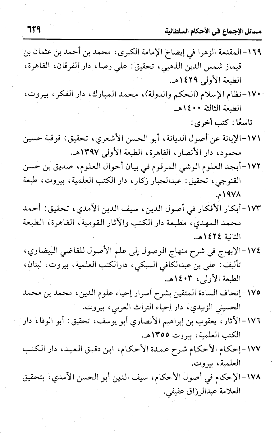 177 - إحكام الأحكام شرح عمدة الأحكام، ابن دقيق العيد، دار الكتب العلمية، بيروت.