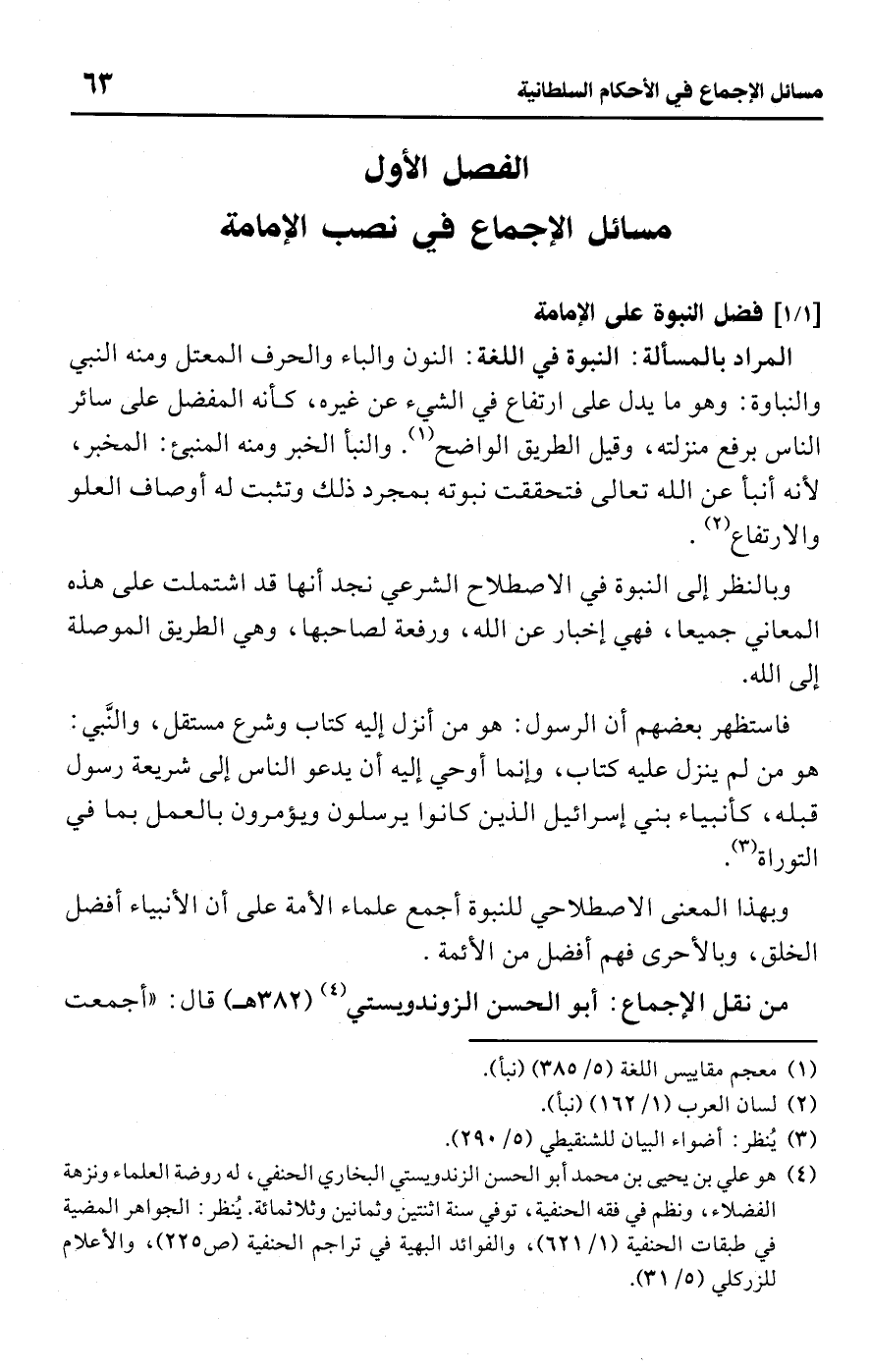 الفصل الأول مسائل الإجماع في نصب الإمامة