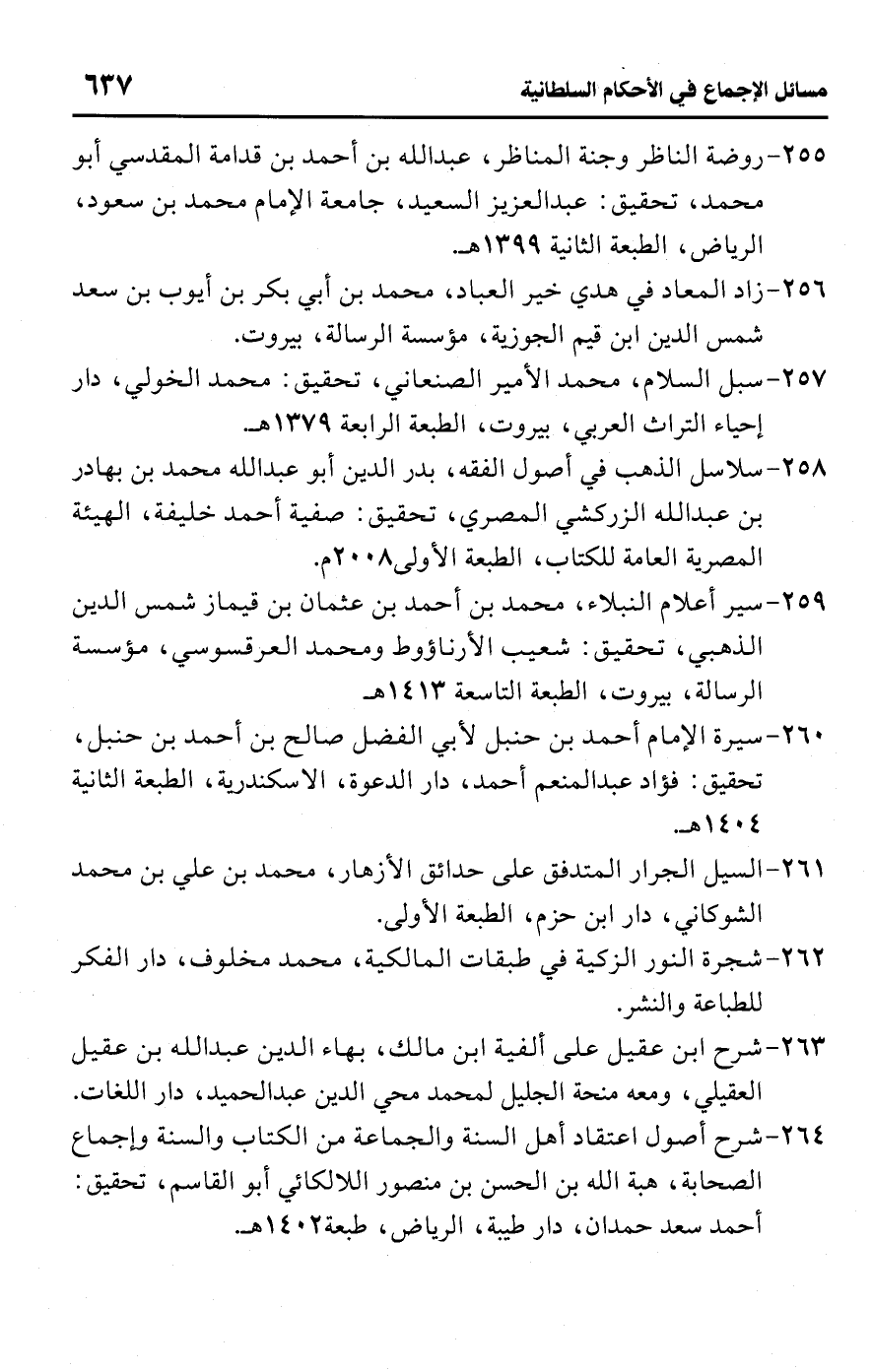 255 - روضة الناظر وجنة المناظر، عبد اللَّه بن أحمد بن قدامة المقدسي أبو محمد، تحقيق: عبد العزيز السعيد، جامعة الإمام محمد بن سعود، الرياض، الطبعة الثانية 1399 هـ.