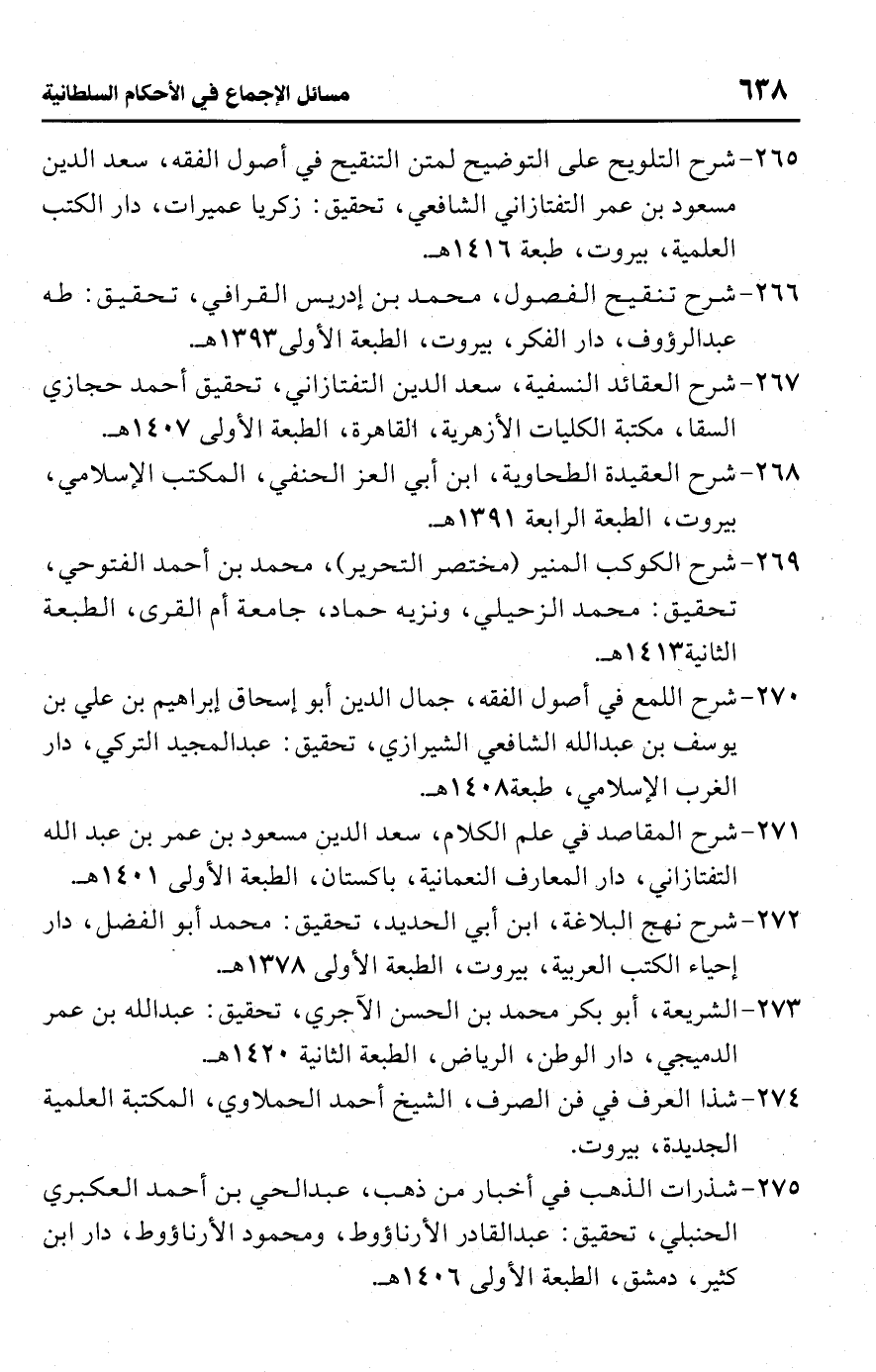 266 - شرح تنقيح الفصول، محمد بن إدريس القرافي، تحقيق: طه عبد الرؤوف، دار الفكر، بيروت، الطبعة الأولى 1393 هـ.