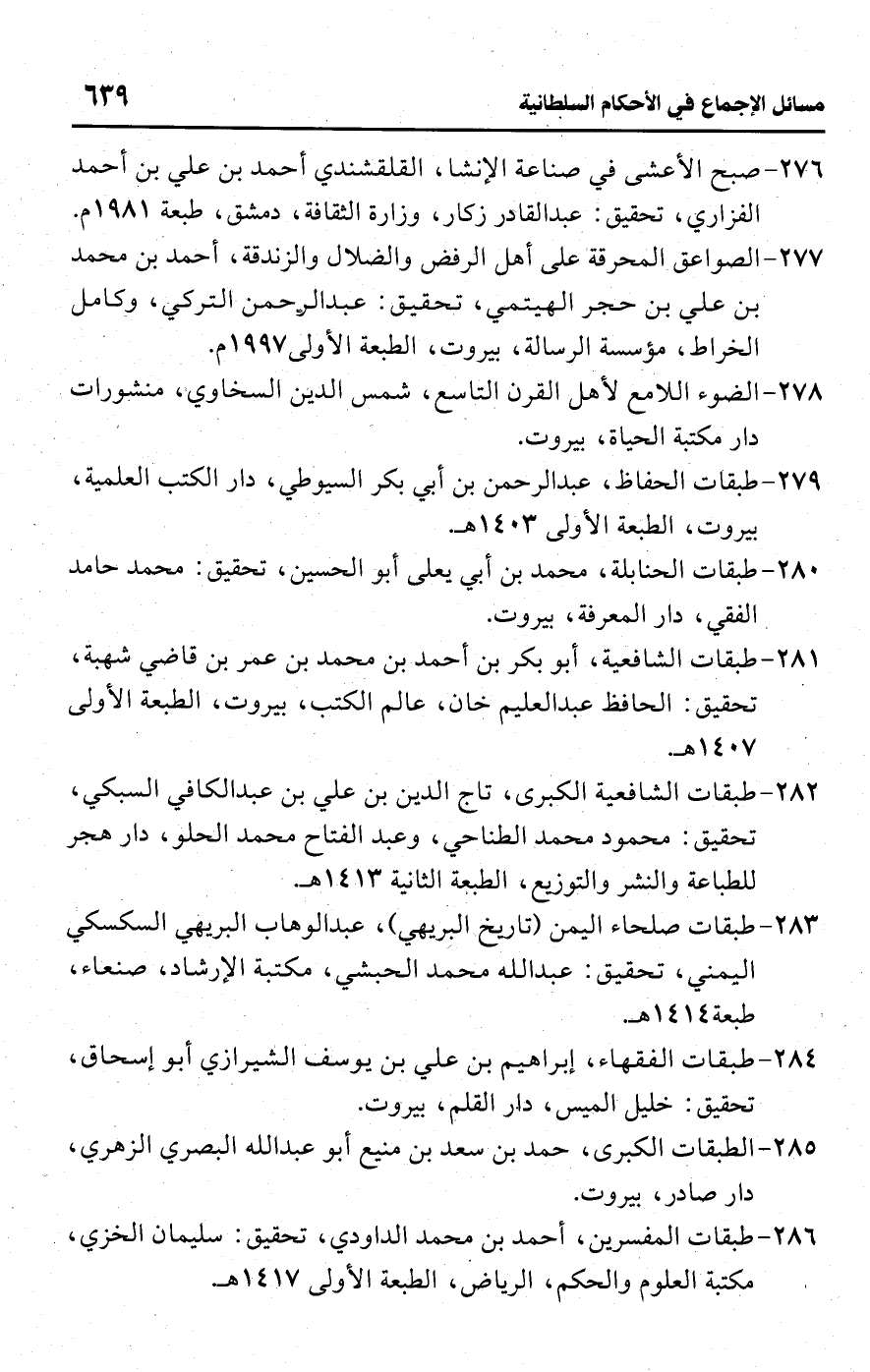 276 - صبح الأعشى في صناعة الإنشا، القلقشندي أحمد بن علي بن أحمد الفزاري، تحقيق: عبد القادر زكار، وزارة الثقافة، دمشق، طبعة 1981 م.