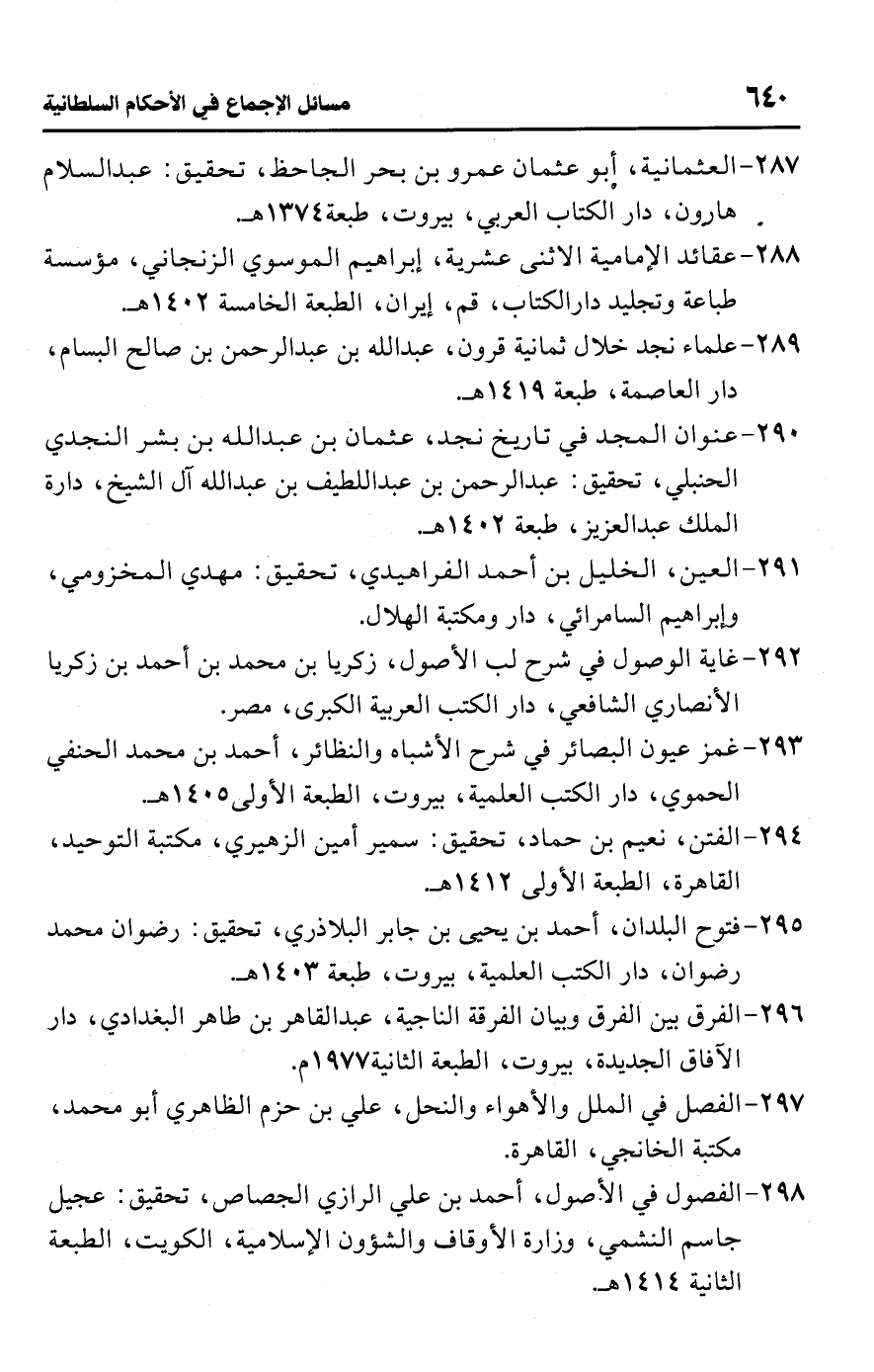 290 - عنوان المجد في تاريخ نجد، عثمان بن عبد اللَّه بن بشر النجدي الحنبلي، تحقيق: عبد الرحمن بن عبد اللطيف بن عبد اللَّه آل الشيخ، دارة الملك عبد العزيز، طبعة 1402 هـ.